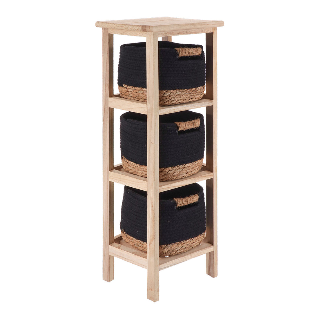 Comodă din Lemn Paulownia cu 3 Sertare din Iarbă de Mare și Bumbac – NaturalNegru