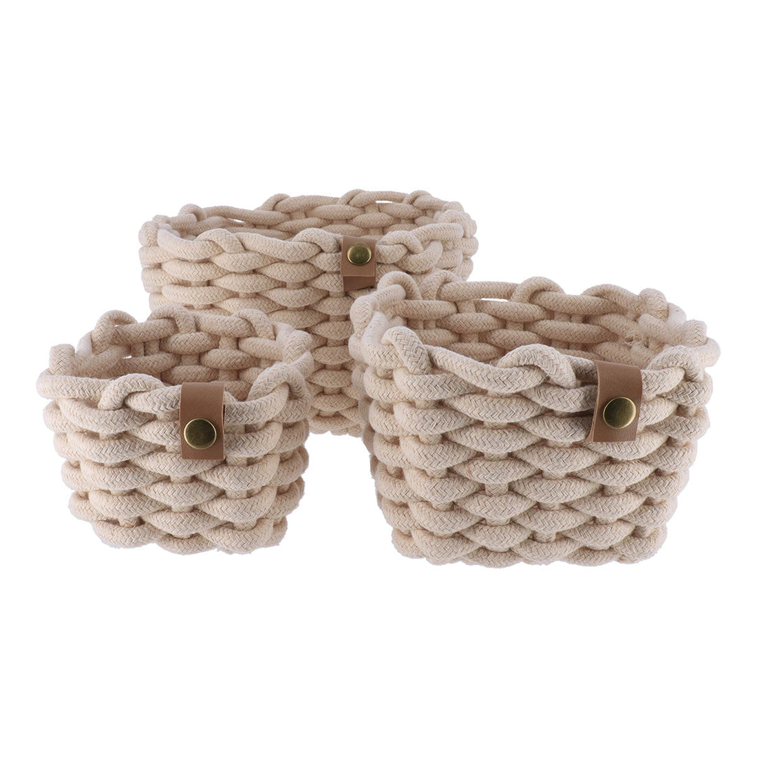 Set de 3 Coșuri din Poliester/Bumbac cu Efect de Frânghie - Bej