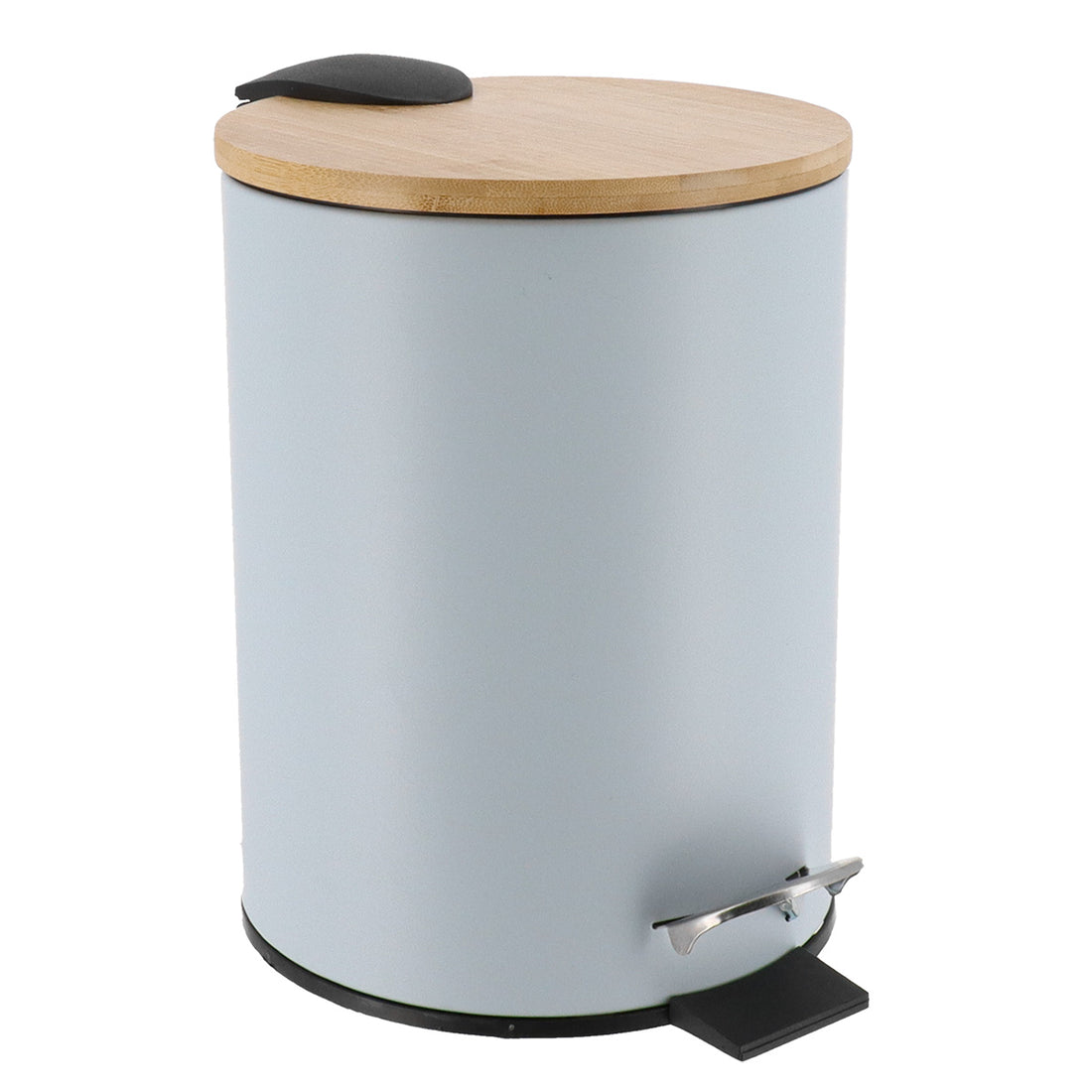 Coș De Gunoi Metalic Cu Închidere Lentă 3L - Albastru/Bambus