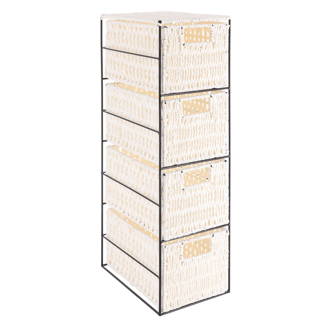 Mobilier din MDF/Paulownia Alb cu 4 Coșuri din Hârtie Împletită - Alb