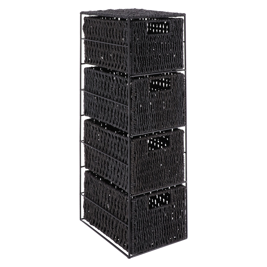 Mobilier din MDF/Paulownia Negru cu 4 Coșuri din Hârtie Împletită - Negru/Natural
