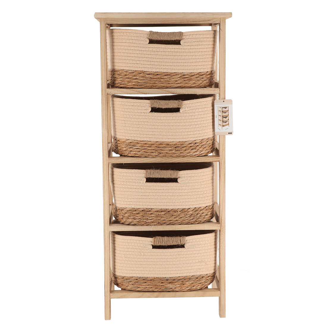 Mobilier din Paulownia Natural cu 4 Coșuri din Hârtie Împletită - Natural