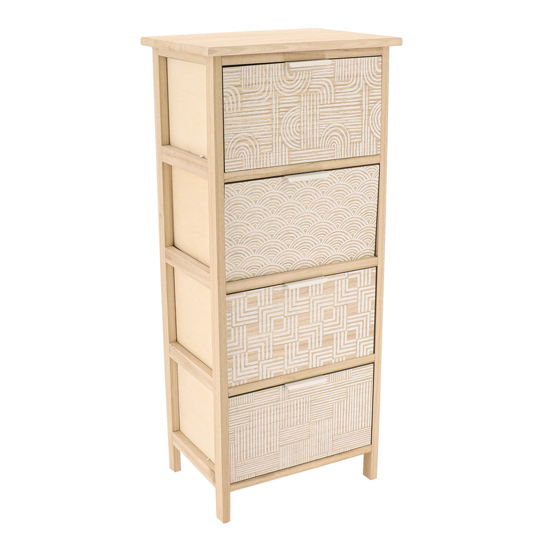 Mobilier din Paulownia cu 4 Sertare Imprimate și Butoane din Lemn - Natural