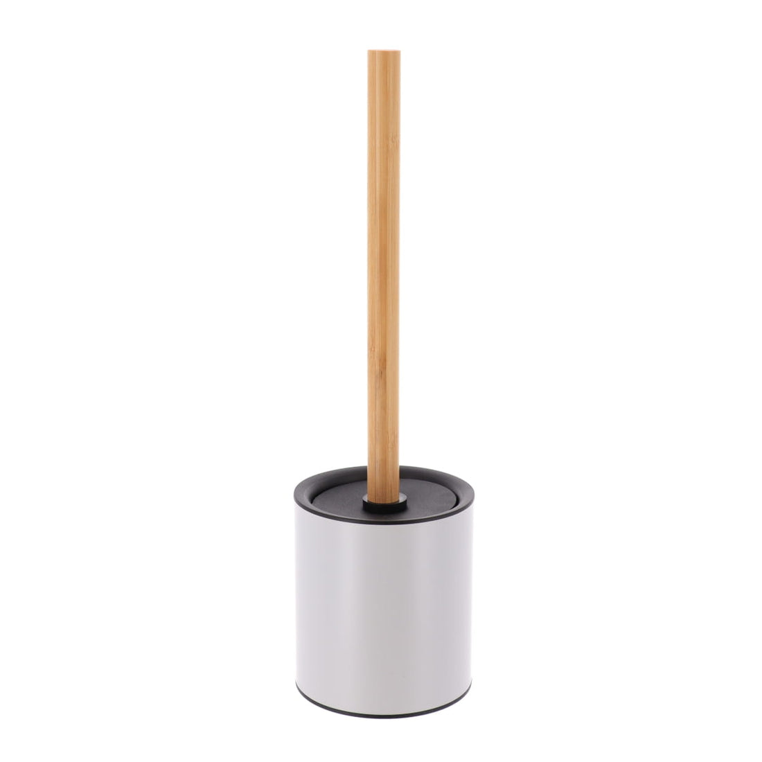 Perie WC metalică cu mâner din bambus – Gri deschis