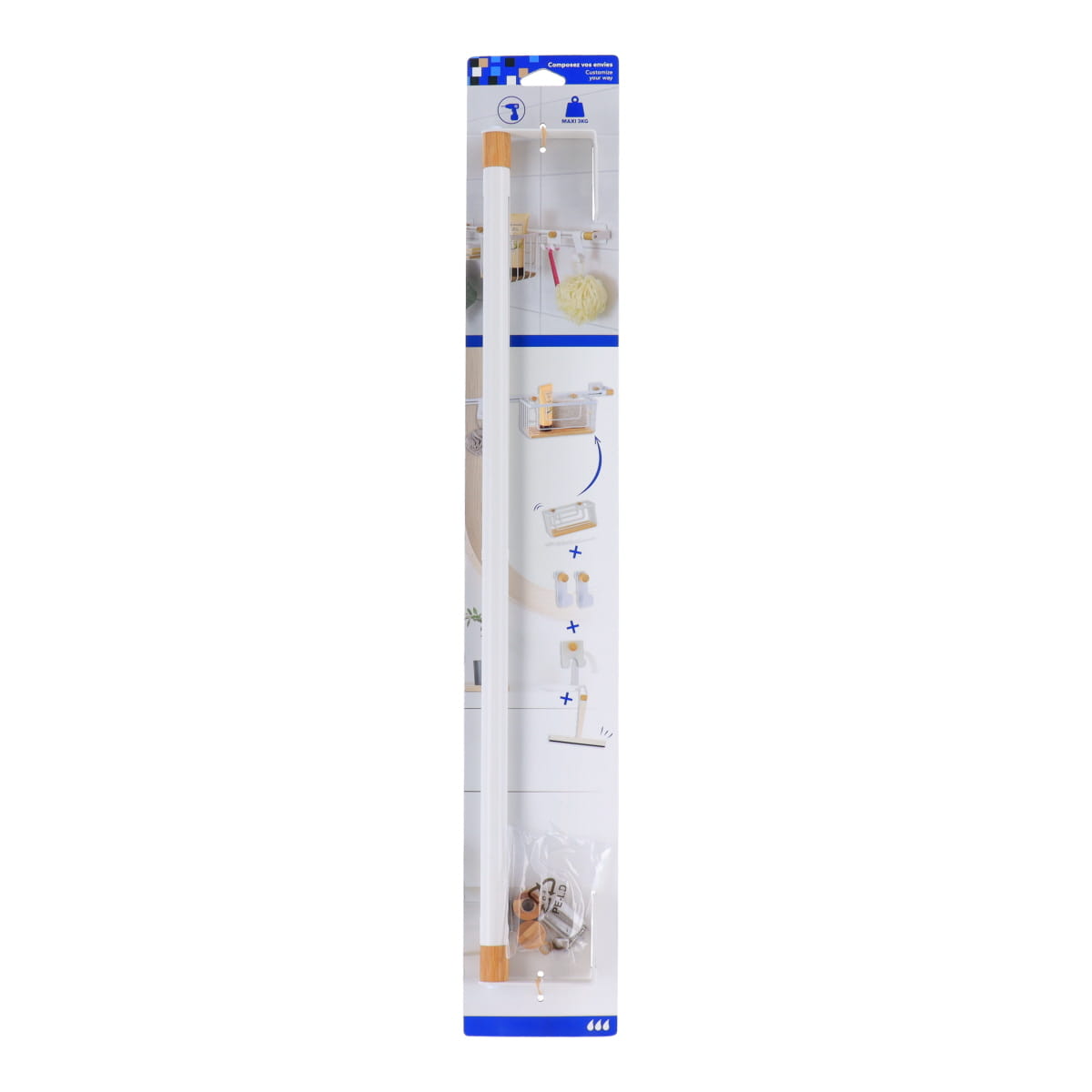 Bară suport din inox pentru accesorii personalizabile – Alb mat