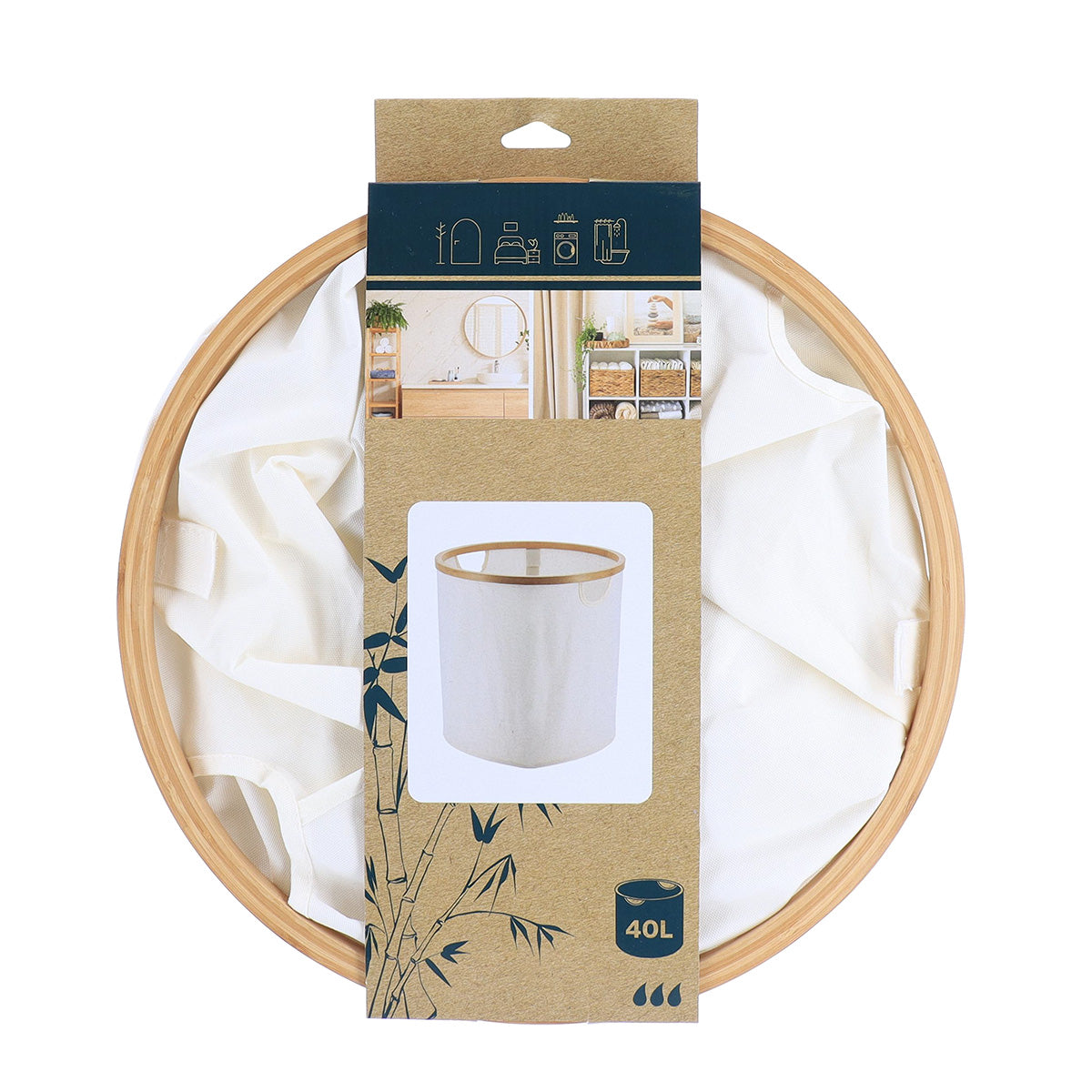 Coș de rufe pliabil din poliester cu cadru din bambus – formă rotundă, natural/bambus