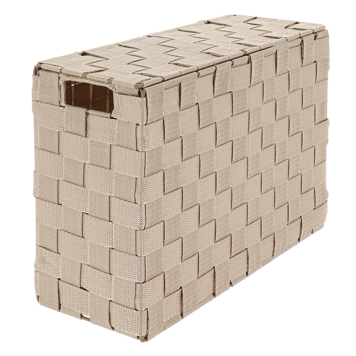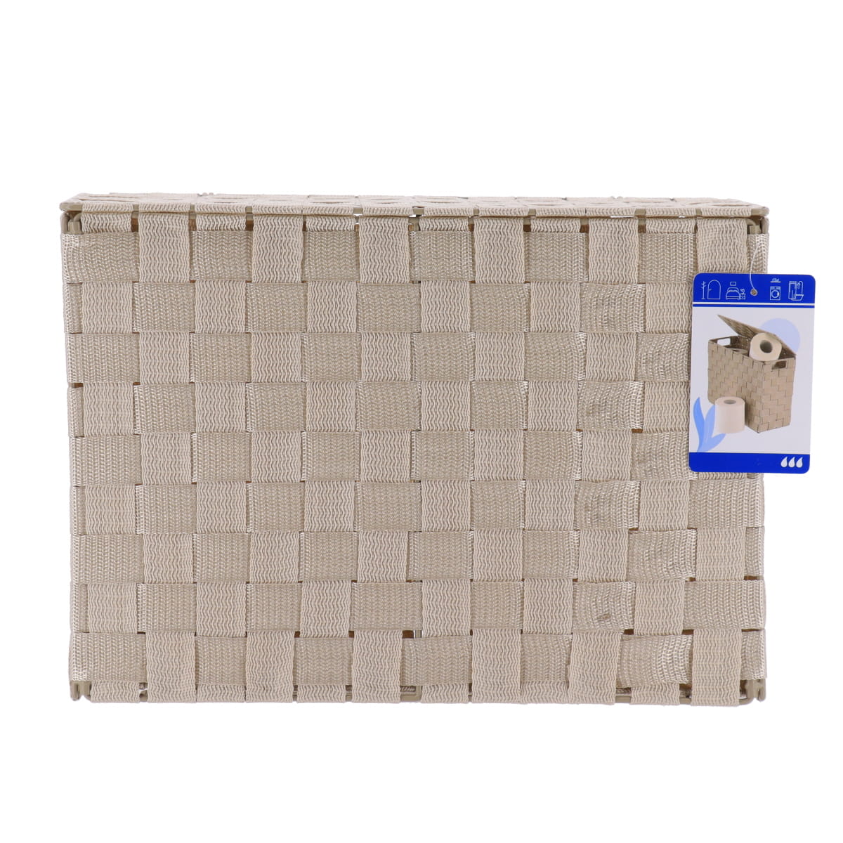 Coș de depozitare cu capac, realizat din poliester rezistent și structură din sârmă metalică vopsită. Finisajul natural/crem oferă un aspect neutru și elegant, ideal pentru organizarea produselor în baie, dressing sau spații multifuncționale. Designul dreptunghiular permite o utilizare eficientă a spațiului, iar capacul asigură protecție împotriva prafului. Marcat TRIMAN – conform cu cerințele de reciclare.