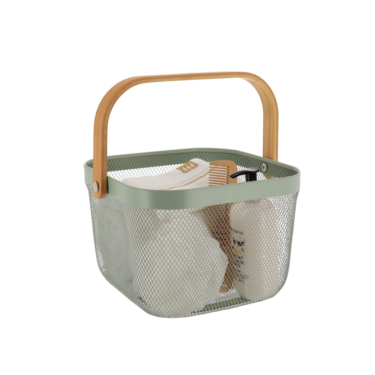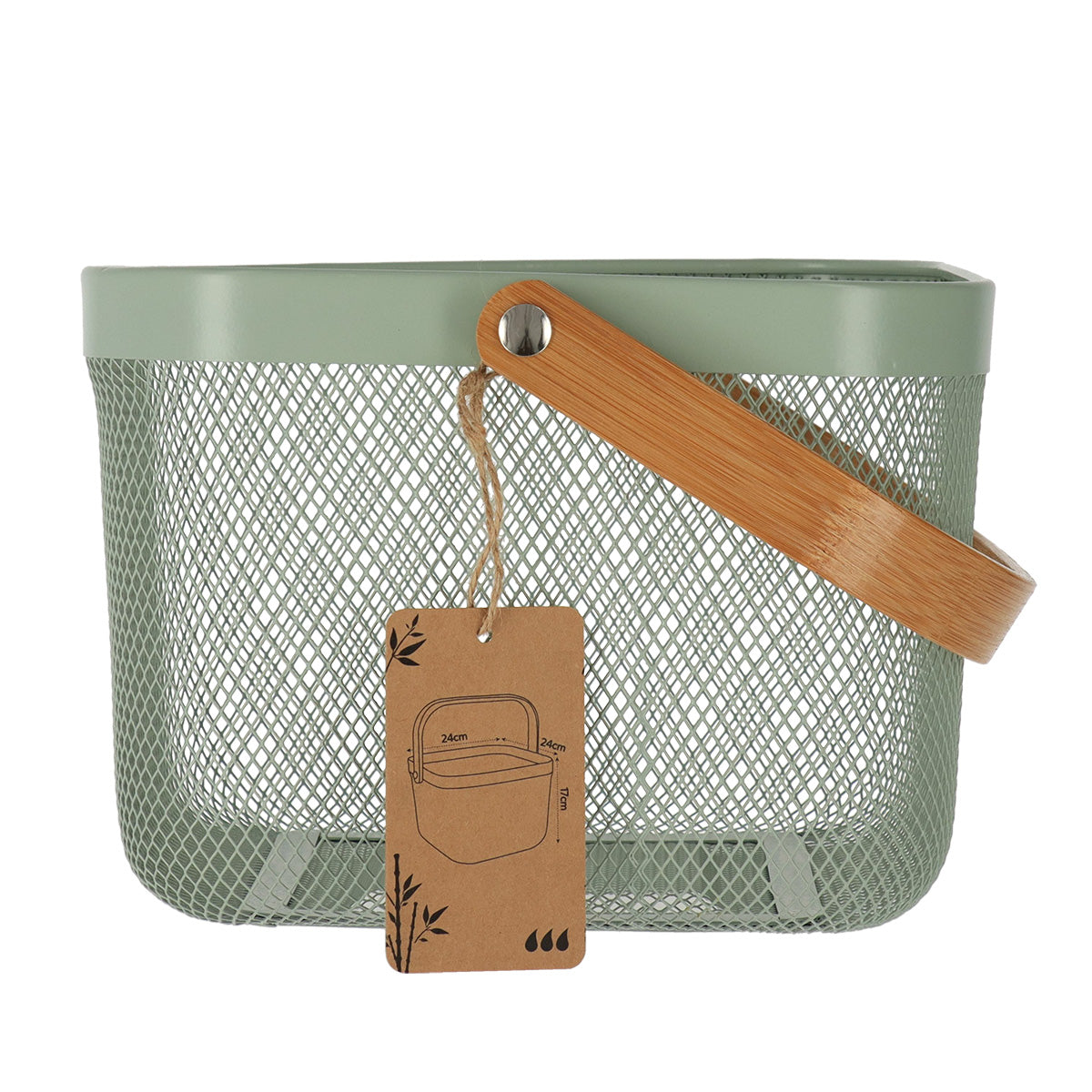 Coș pătrat din metal cu mâner din bambus – Kaki