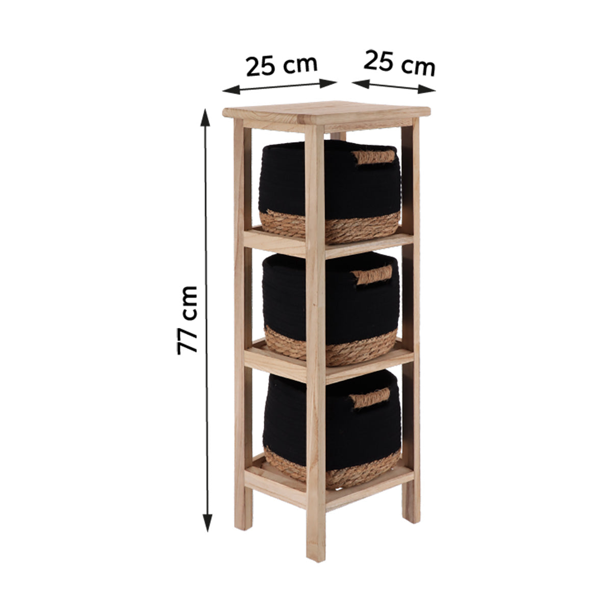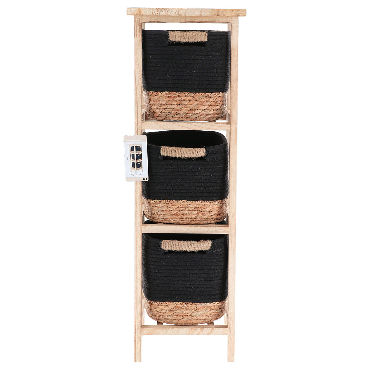 Comodă din Lemn Paulownia cu 3 Sertare din Iarbă de Mare și Bumbac – NaturalNegru