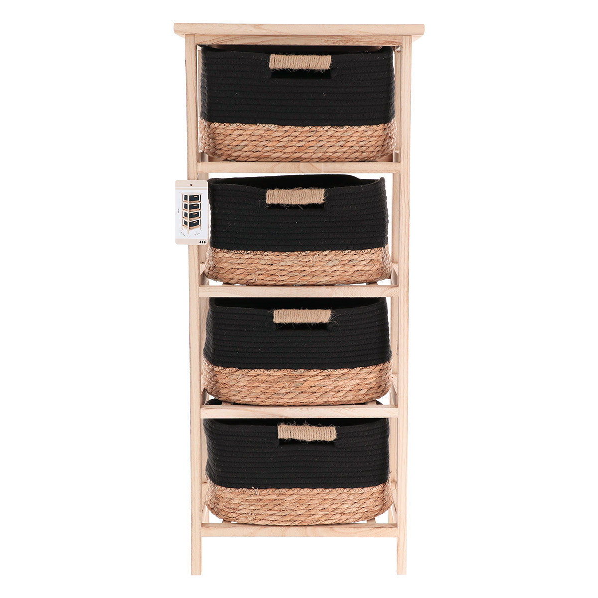 Comodă din Lemn Paulownia cu 4 Sertare din Iarbă de Mare și Bumbac – NaturalNegru
