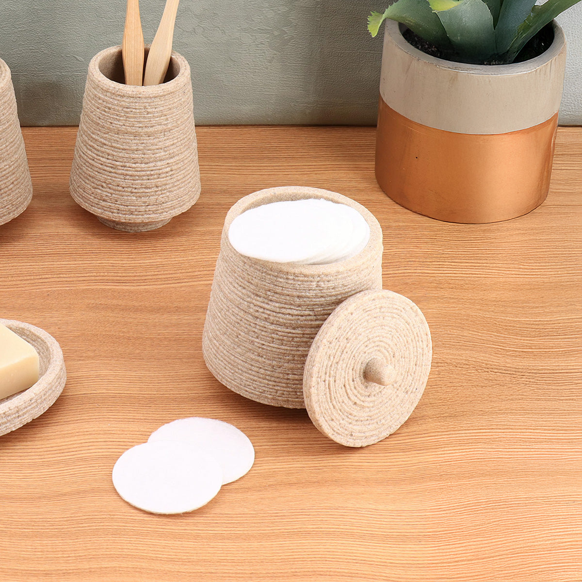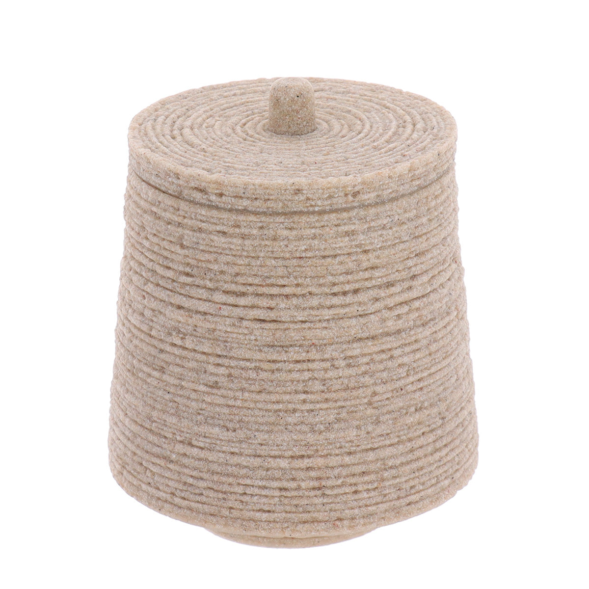 Fabricată din rasină polimerică de înaltă calitate, cutia este rezistentă, stabilă și ușor de curățat. Designul său rotund, cu finisaj mat inspirat de textura nisipului, aduce o notă de rafinament și naturalețe în orice decor de baie modern sau cu accente organice.
