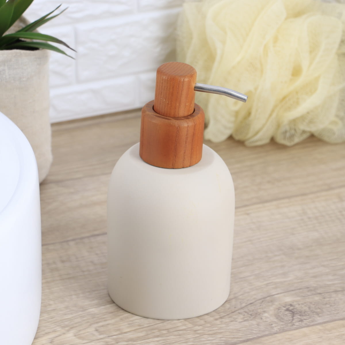 Dispenser rotund din ciment – efect brut – 230 ml – bej