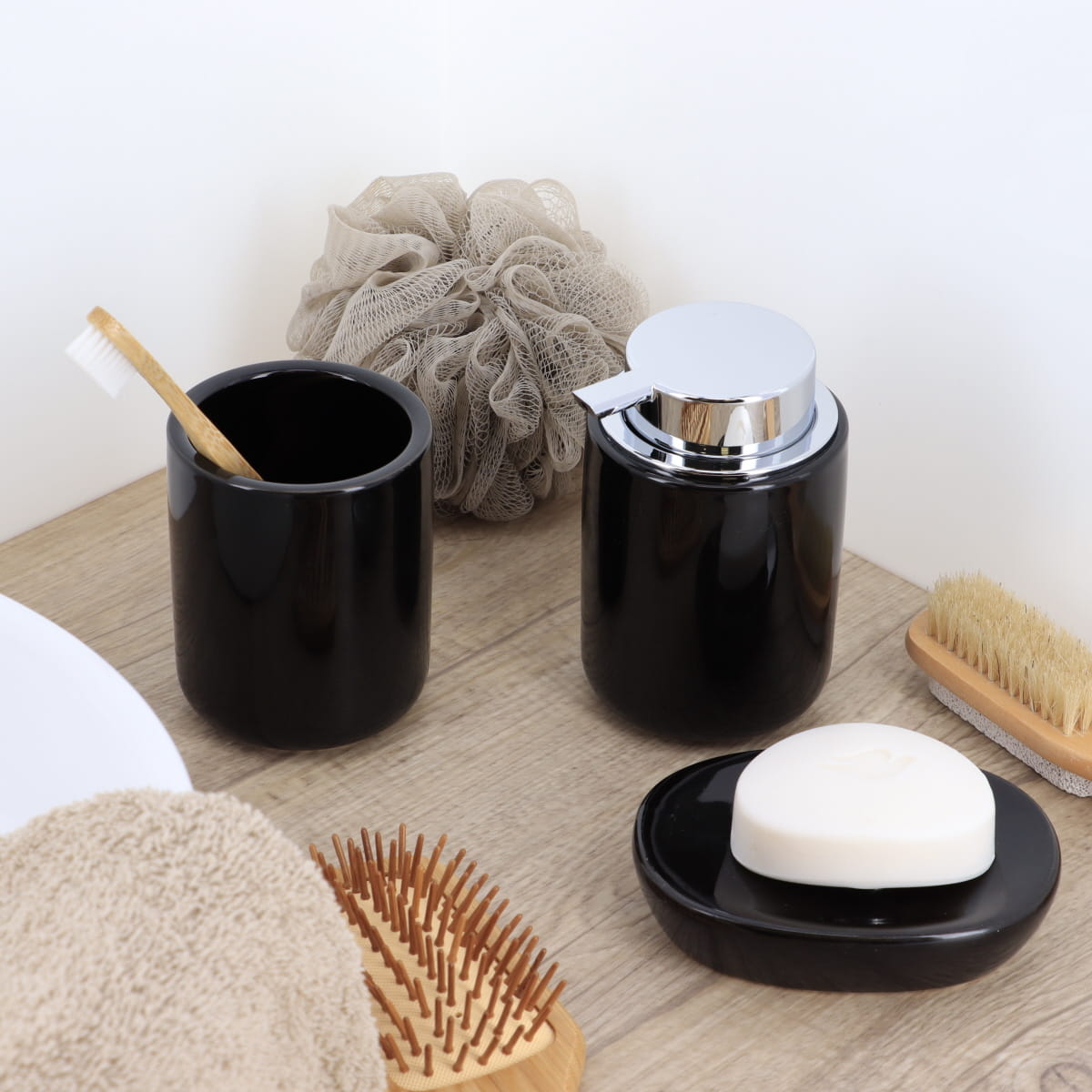 Dispenser rotund din dolomită – negru lucios – 235 ml