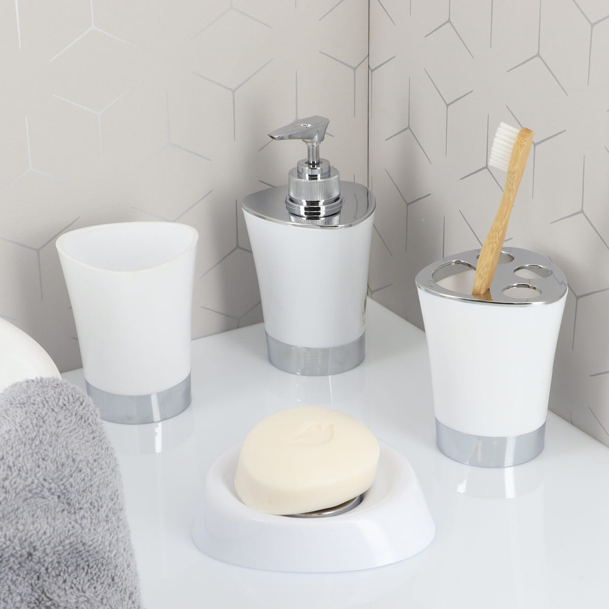 Dispenserul de săpun CONICAL PP – WHITE este realizat din polipropilenă albă cu bază cromată și pompă integrată. Designul său elegant și sofisticat se potrivește perfect în orice decor de baie. Ușor de curățat, rezistent și practic, este ideal pentru utilizarea zilnică.
