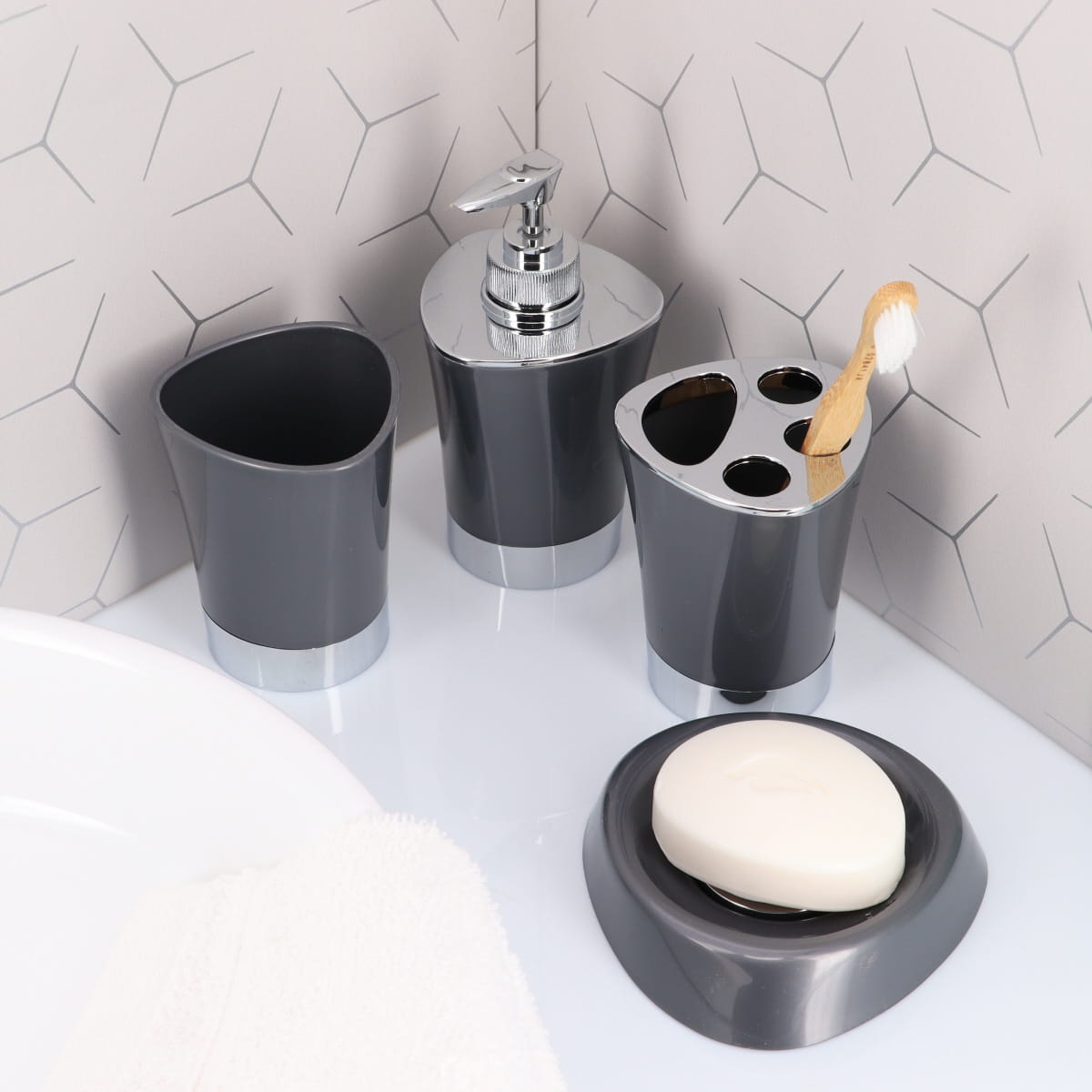 Dispenserul de săpun CONICAL PP – GREY este realizat din polipropilenă gri cu bază cromată și pompă integrată, oferind un design elegant și sofisticat, ideal pentru orice decor de baie. Ușor de curățat, rezistent și practic, este perfect pentru utilizarea zilnică.