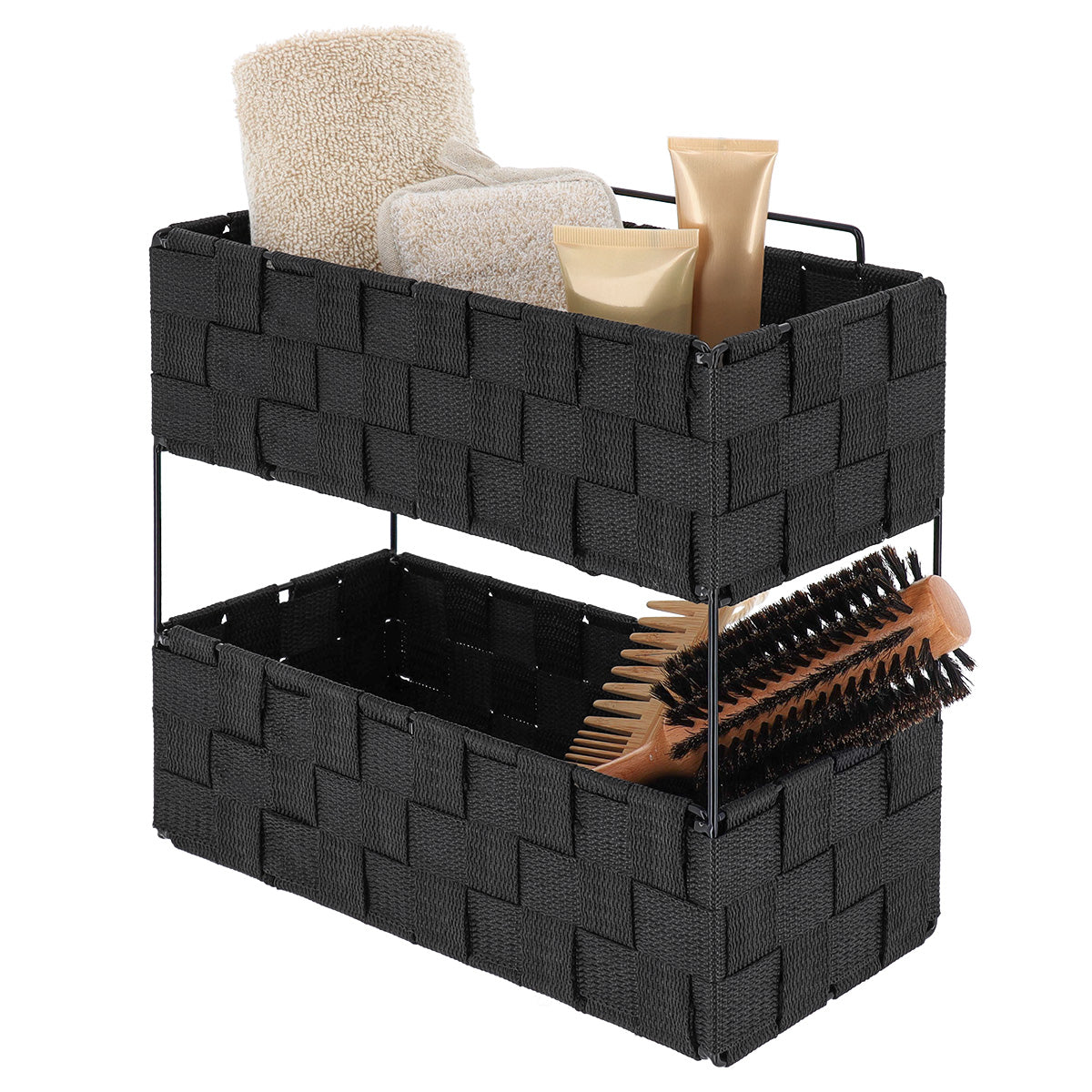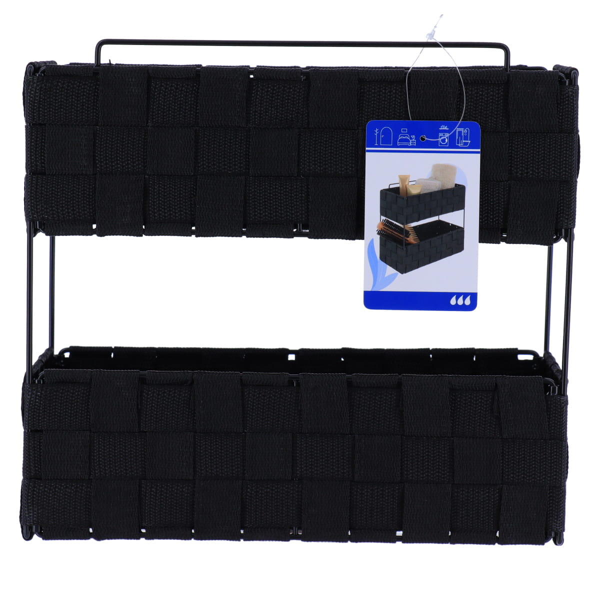 Etajeră 2 niveluri GM împletită din poliester și metal – Negru