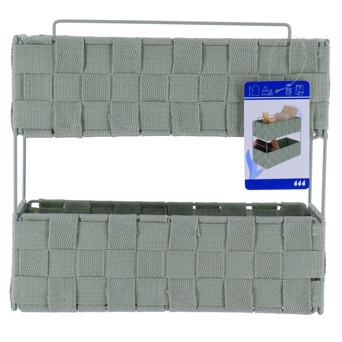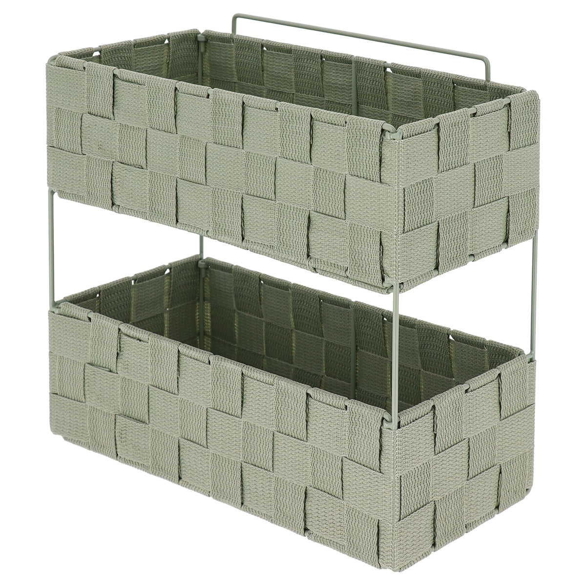 Etajeră 2 niveluri GM împletită din poliester și metal – Verde salvie