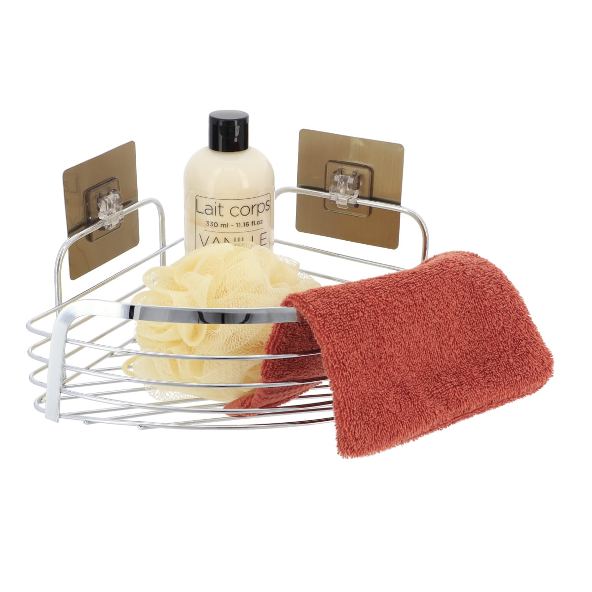 Această etajeră de colț este prevăzută cu un sistem de fixare pe card adeziv 3M ultra-rezistent, ideală pentru organizarea produselor esențiale din baie fără a fi nevoie de găurire. Forma sa triunghiulară optimizează spațiul disponibil, iar finisajul din oțel inoxidabil cromat oferă un aspect lucios, elegant și o rezistență sporită la umiditate. Perfectă pentru păstrarea șampoanelor, gelurilor de duș și produselor de igienă la îndemână.