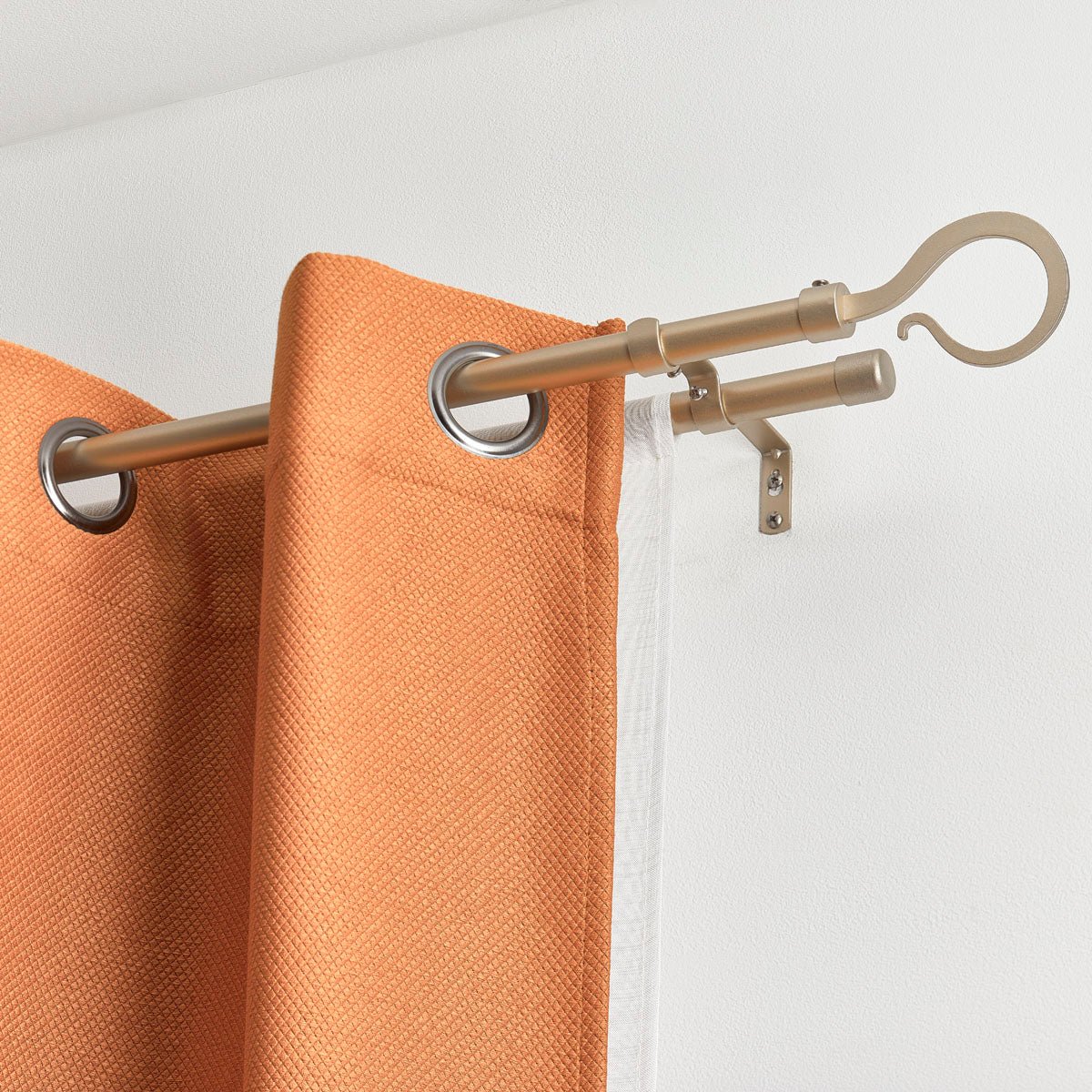 Adaugă o notă de rafinament clasic cu Galeria Dublă Extensibilă Atelier, în finisaj auriu mat. Reglabilă între 120 și 210 CM, această galerie este ideală pentru ferestre de dimensiuni standard și permite montarea perdelei și draperiei simultan. Finisajul cald auriu și capetele decorative elegante transformă această galerie într-un detaliu decorativ prețios pentru orice interior sofisticat.