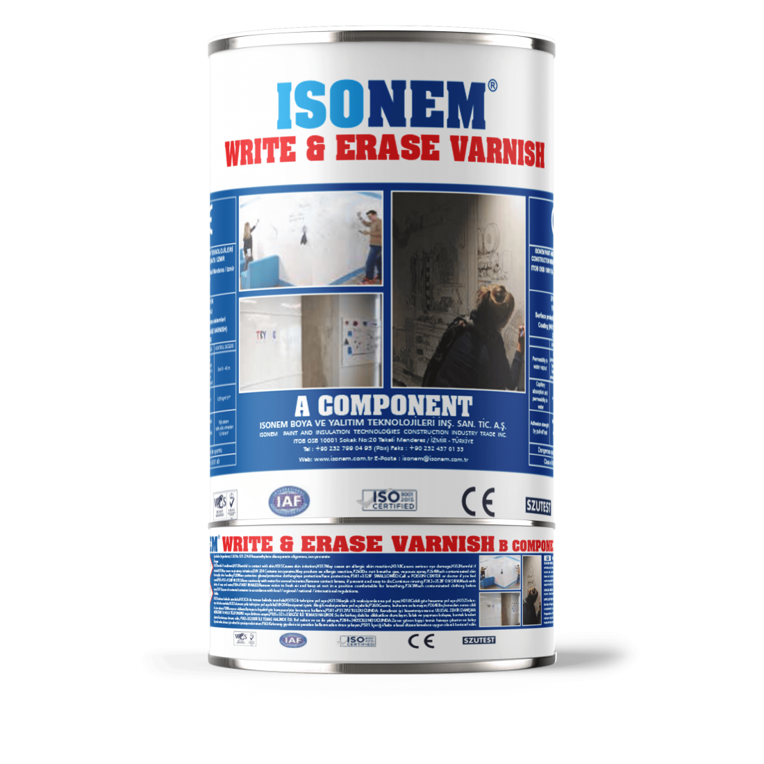 WRITE & ERASE VARNISH este un lac transparent bicomponent, pe bază de apă, care transformă orice suprafață într-o tablă albă pentru scris și șters. Se aplică ușor pe pereți, birouri, uși, dulapuri, mese sau panouri, oferindu-le funcționalitatea de whiteboard, fără a le modifica aspectul.