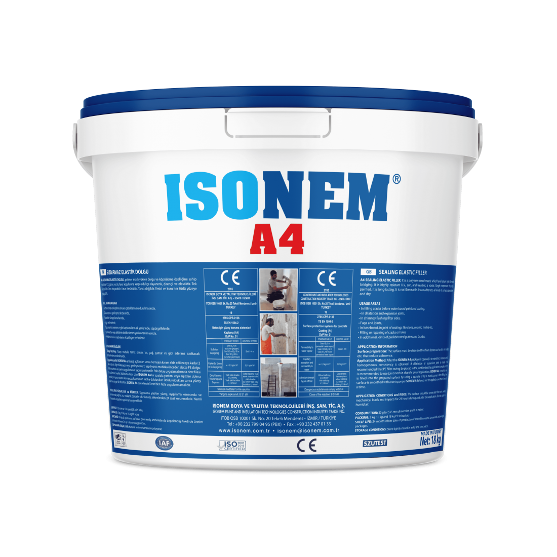 A4 este un mastic polimeric monocomponent, cu proprietăți excelente de umplere și acoperire. Produsul este elastic, rezistent la radiații UV, soare și intemperii, poate fi vopsit, este durabil și neinflamabil. Aderență excelentă pe toate tipurile de suprafețe uscate și absorbante.