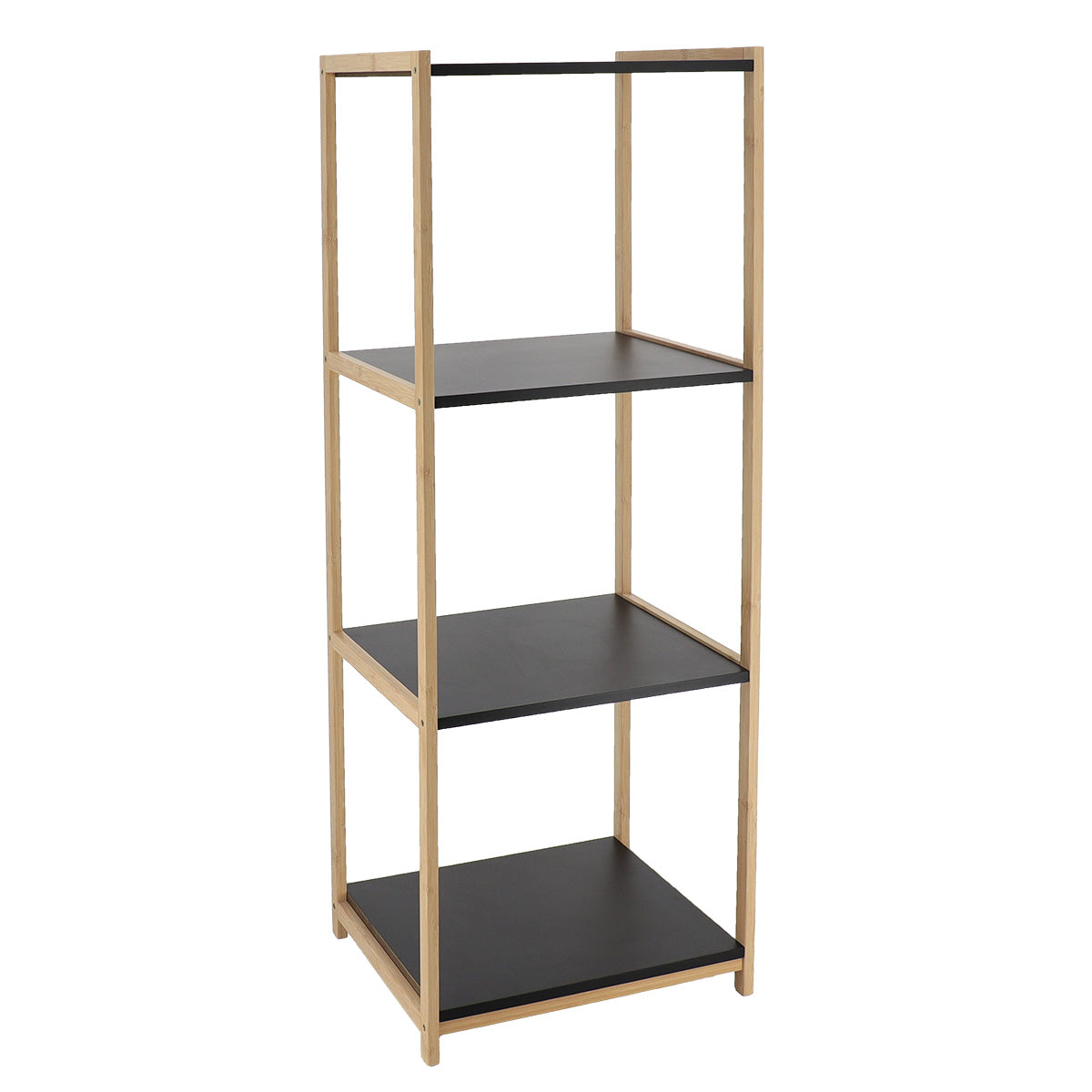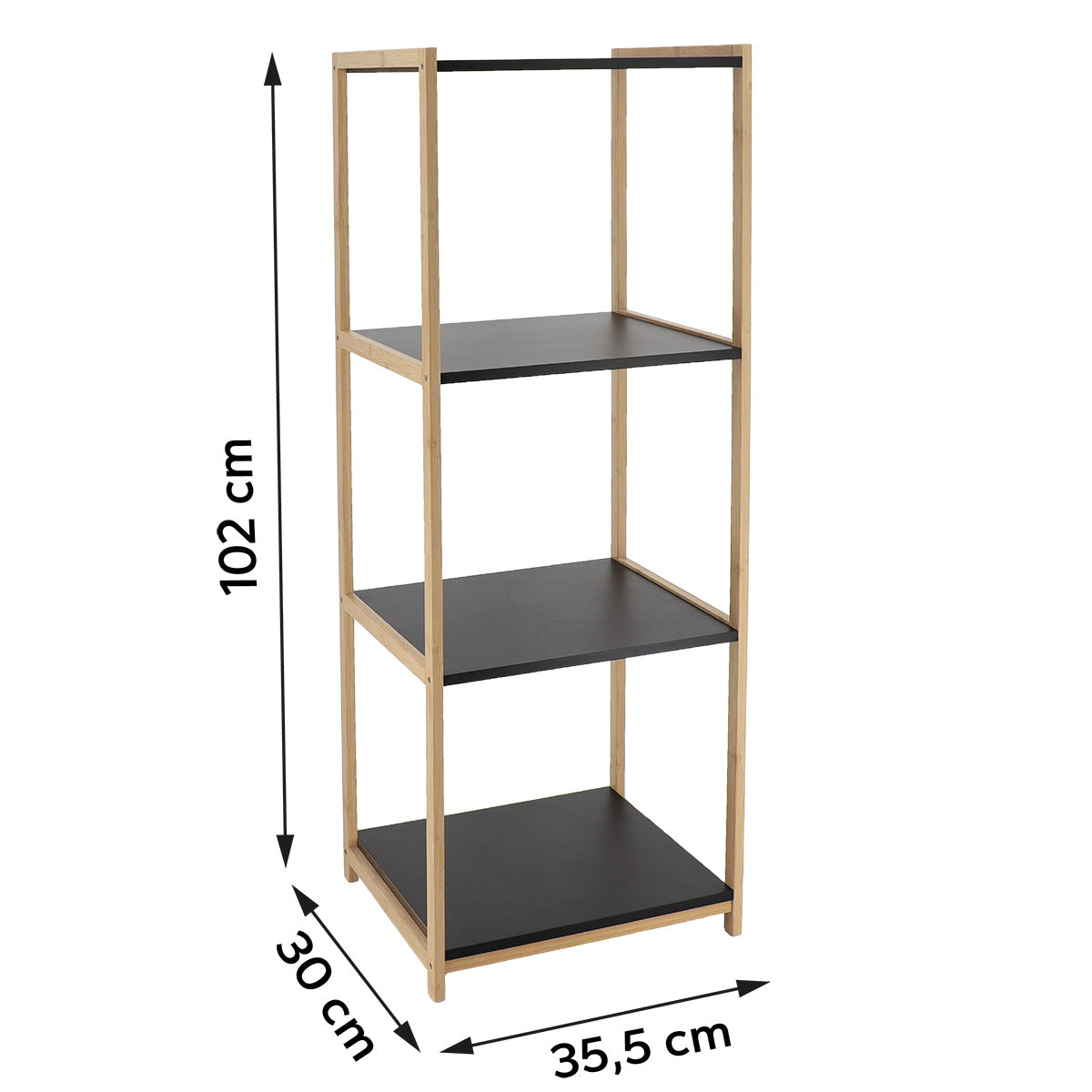 Mobilier din bambus cu 4 rafturi negre din MDF - Bambus/Negru