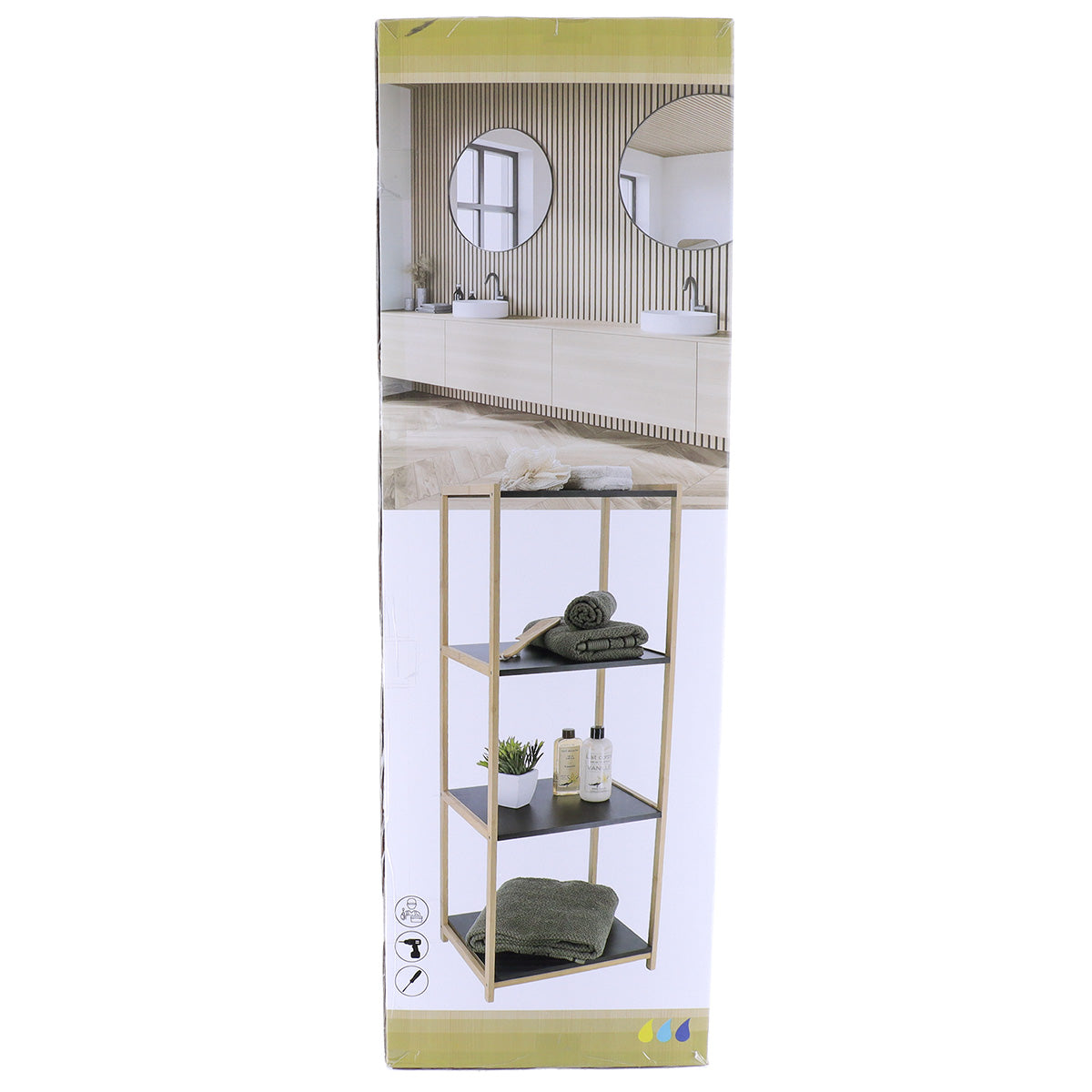 Această unitate cu 4 rafturi, care combină lemnul vopsit și bambusul, va adăuga un stil elegant și exotic interiorului tău. Concepută pentru a optimiza spațiile, oferă 3 rafturi pentru depozitare. Necesită asamblare proprie. Rezistentă la umiditate.
