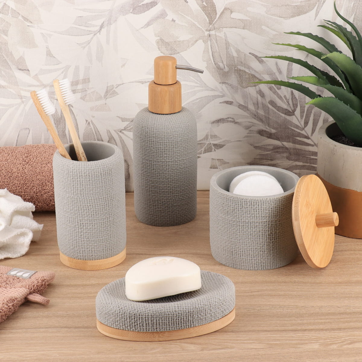 Pahar de baie rotund din polirășină cu efect plasă și bambus – gri