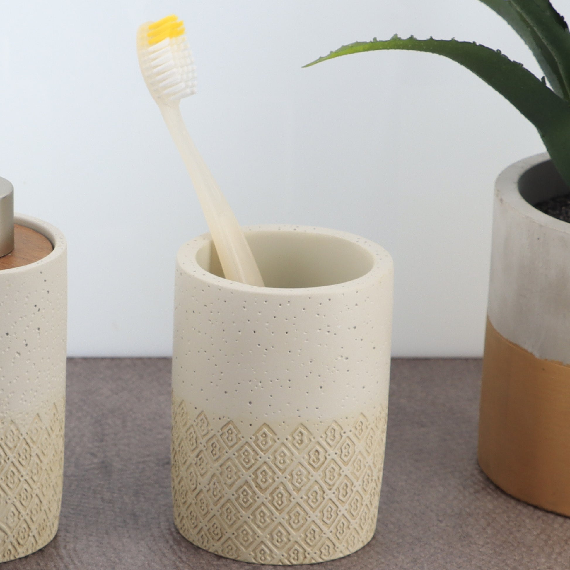 Acest pahar de baie din gama Reconnect este realizat din polirășină gravată, cu un design estetic ce adaugă stil și modernitate spațiului tău. Ideal pentru depozitarea periuței și pastei de dinți, este ușor, robust și simplu de curățat. Finisajul natural se integrează perfect într-un decor calm și echilibrat.