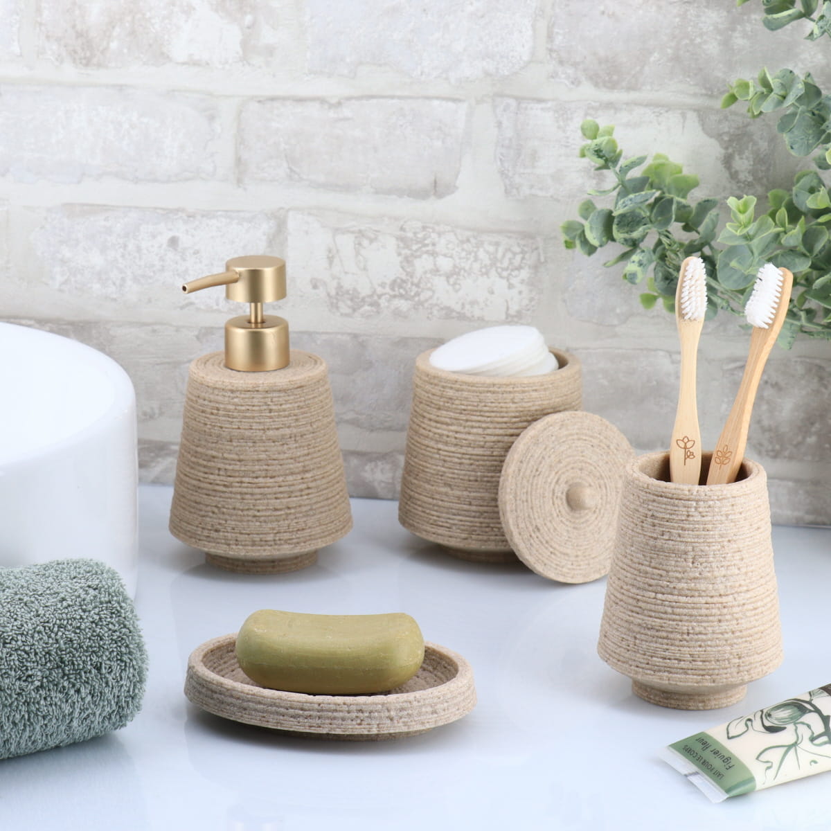 Adaugă un plus de eleganță și funcționalitate băii tale cu paharul din rasină cu finisaj nisip în nuanța naturală. Parte din colecția LINA, acest accesoriu este ideal pentru organizarea periuțelor de dinți sau a altor ustensile de baie, contribuind la un decor armonios și aerisit.