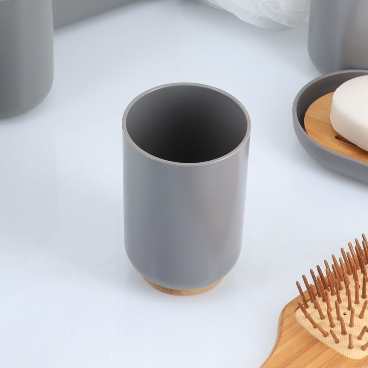 Pahar rotund din plastic PS cu bază bambus – gri / bambus