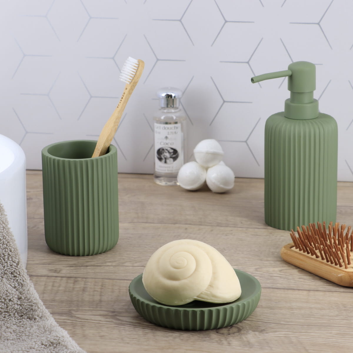 Acest pahar din polirășină cu finisaj striat are un design rafinat, ideal pentru orice tip de interior. Este foarte robust și ușor de curățat, perfect pentru depozitarea periuțelor și pastei de dinți. Culoarea kaki (kaki green) adaugă un ton natural și echilibrat, ideal pentru băi cu accente vegetale sau terestre.