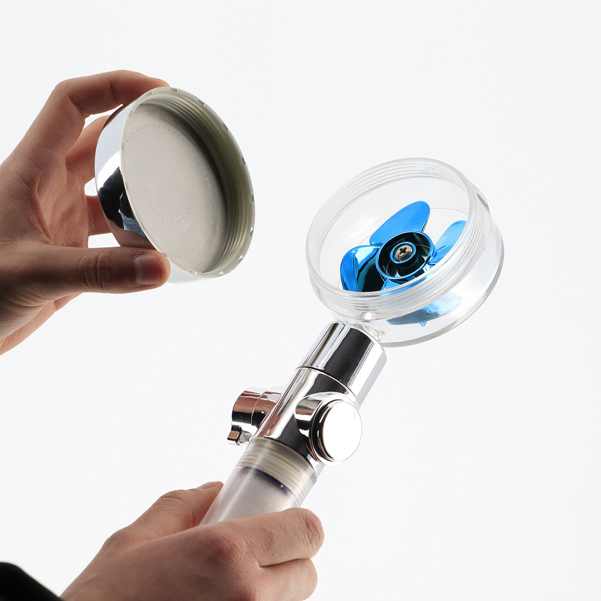Para de duș Shower Pulse este concepută pentru a oferi un jet puternic și constant, fără a crește consumul de apă. Datorită tehnologiei de comprimare a apei cu elice internă, presiunea este amplificată în mod natural, rezultând o experiență de duș mai intensă și mai eficientă.