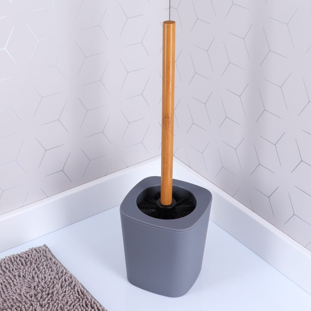 Perie de toaletă din cauciuc, ABS și bambus – gri