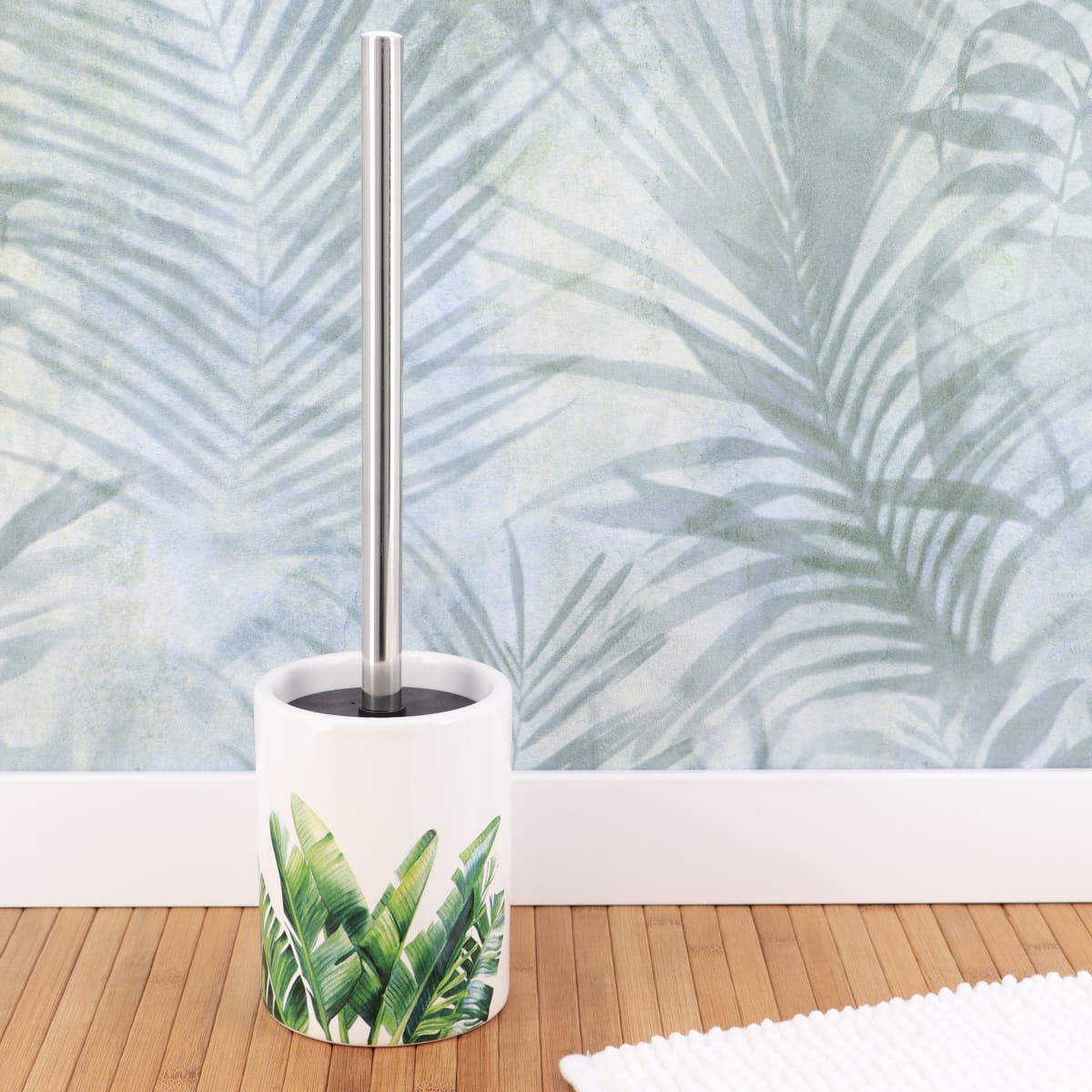 Perie de toaletă realizată din dolomită imprimată, cu tijă din oțel inoxidabil și design vegetal proaspăt, parte din colecția „Oasis”. Imprimeul inspirat din natură aduce prospețime și delicatețe în decorul băii, fiind ideal pentru spații luminoase și relaxante. Certificat TRIMAN, ușor de întreținut. Produs fragil.