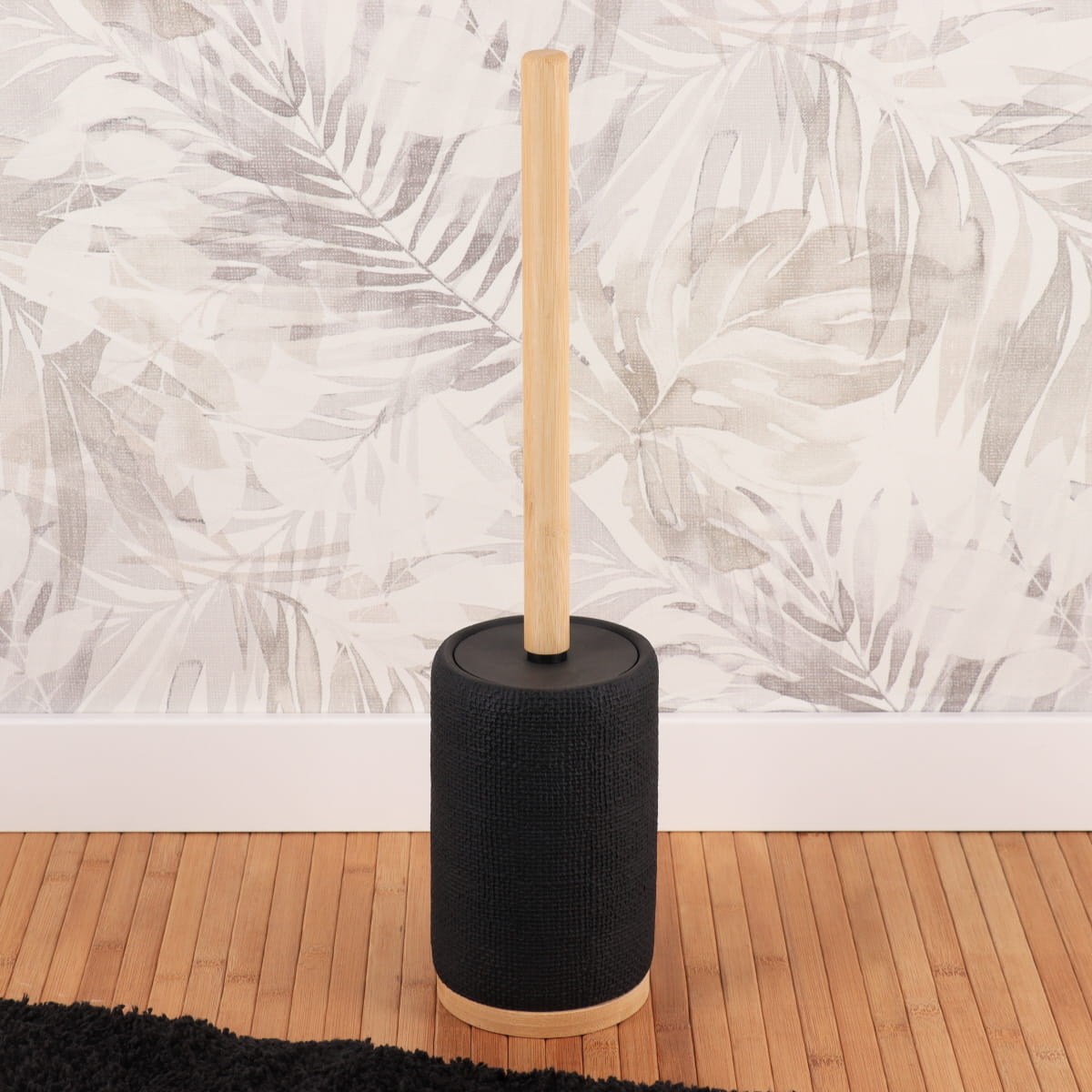 Perie de toaletă din polirășină cu efect plasă și tijă din bambus – negru