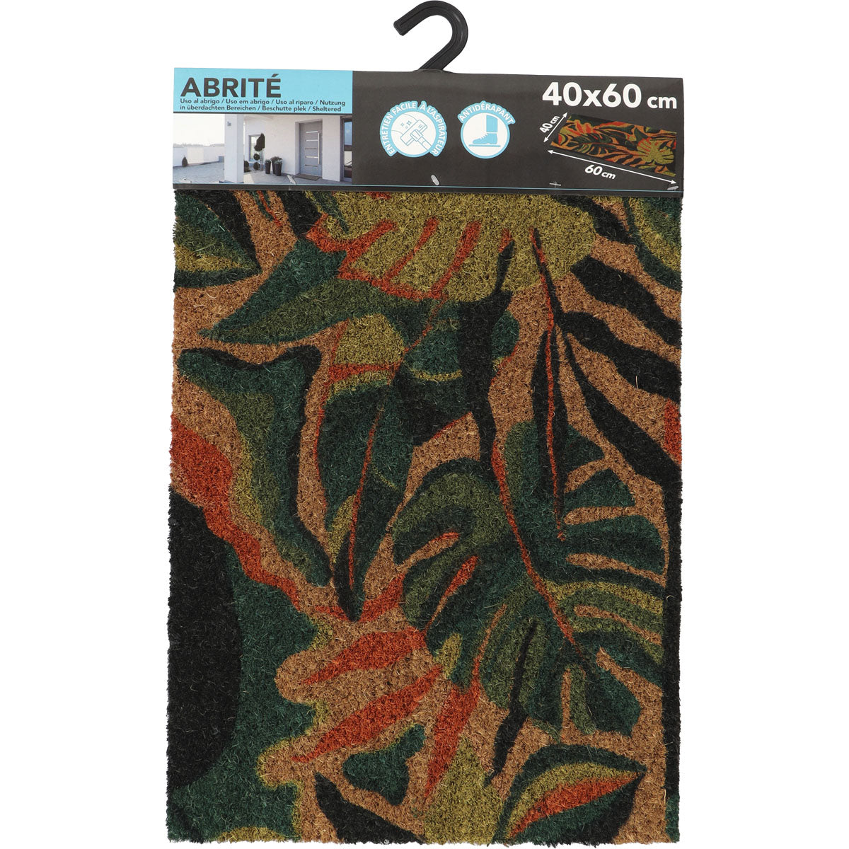 Adaugă un strop de culoare și energie exotică intrării tale cu preșul de intrare Exotica, confecționat din fibre de cocos naturale și cu bază din latex antiderapant. Cu dimensiunea de 40x60 cm, este perfect pentru spații de acces mici precum apartamente, balcoane sau holuri. Imprimeul exotic aduce un vibe tropical și vibrant, în timp ce suprafața din cocos ajută la îndepărtarea eficientă a murdăriei de pe încălțăminte.