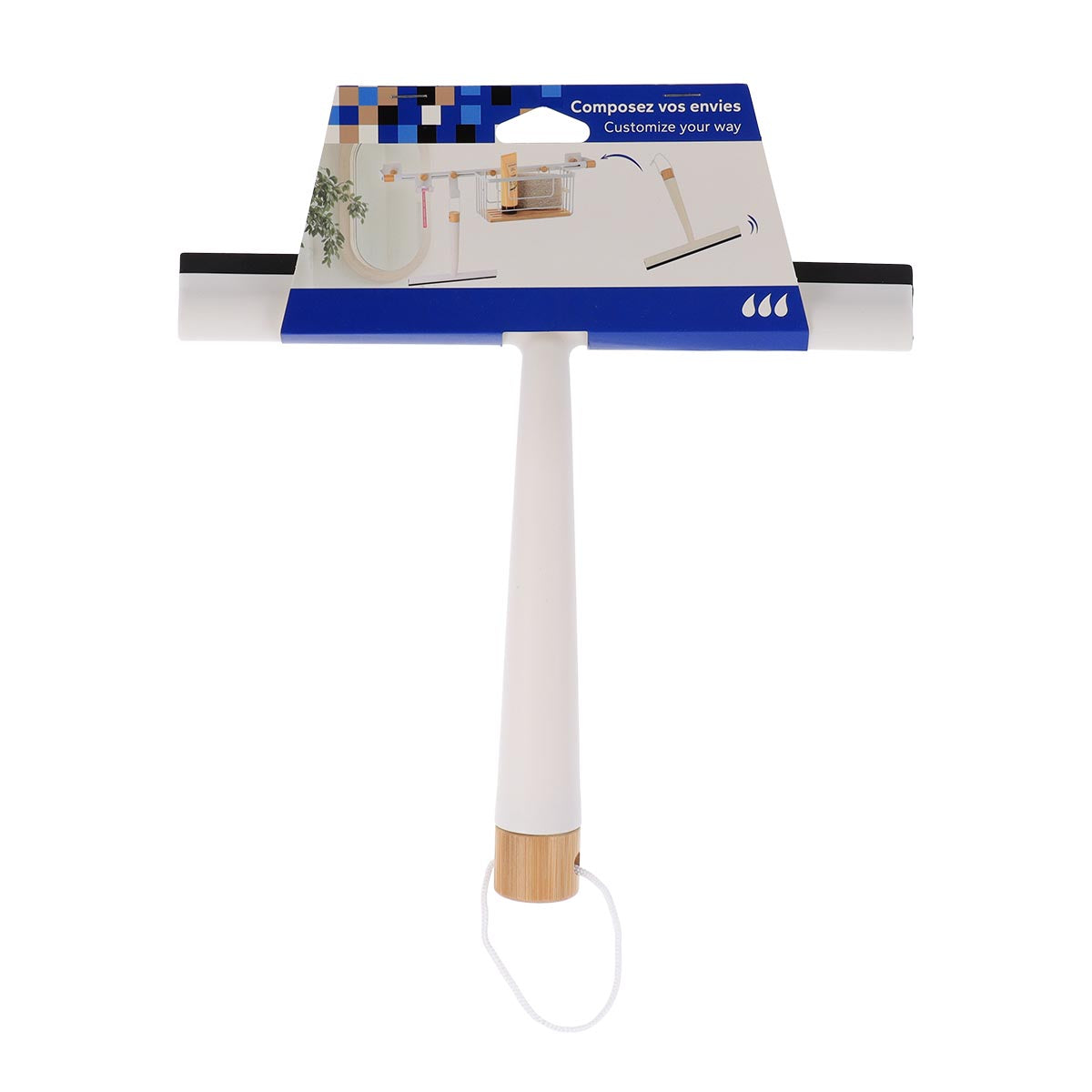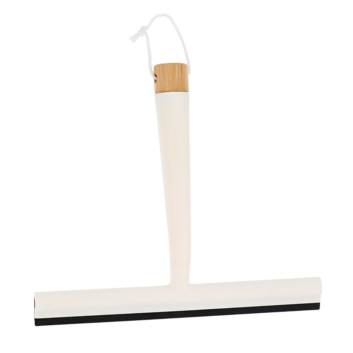 Racletă de duș PP/TPR cu mâner din bambus – Alb mat