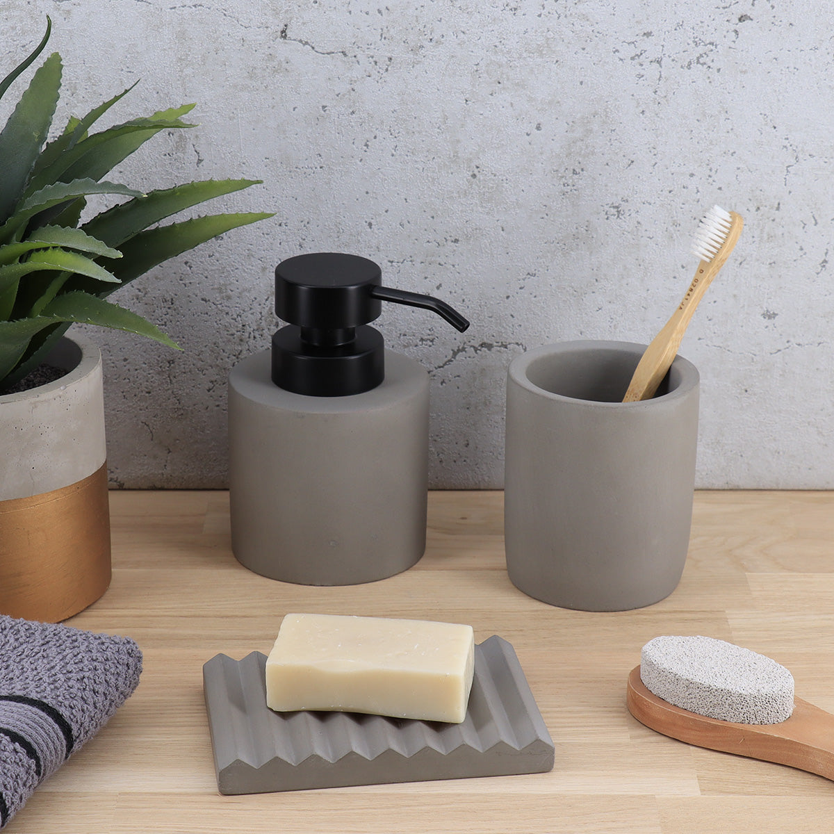 Această săpunieră din ciment gri impresionează prin stilul său grafic și modern, oferind un accent original și contemporan băii tale. Materialul brut conferă un aspect urban și minimalist, fiind totodată robust și ușor de întreținut. Ideală pentru decoruri industriale sau naturale.