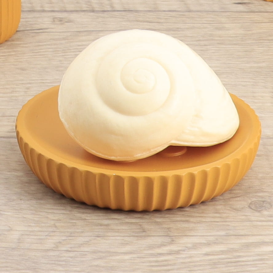 Săpunieră rotundă din polirășină cu striații Timeless – Muștar