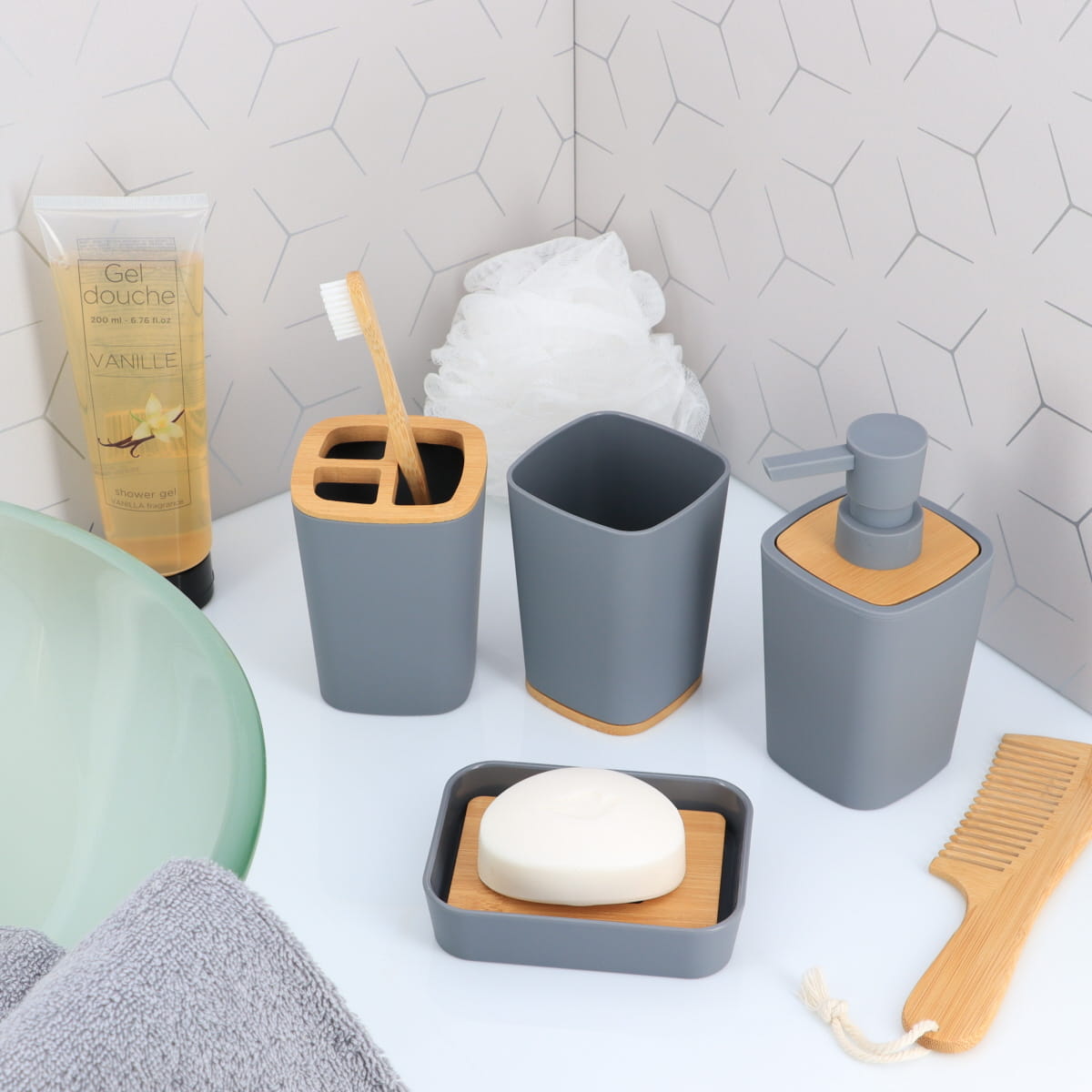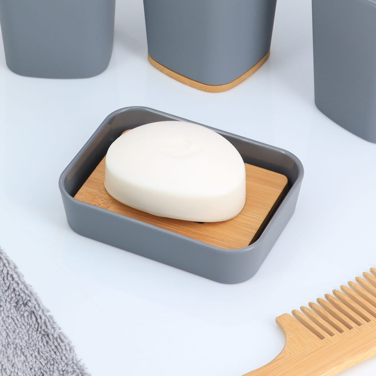 Savoniera RUBBER + ABS AND BAMBOO – GREY combină materiale naturale și sintetice pentru a oferi un design exotic, rafinat și funcțional. Textura sa moale la atingere și finisajul mat o fac ideală pentru băile moderne, adăugând un accent neutru și elegant. Este ușoară, rigidă și rezistentă.