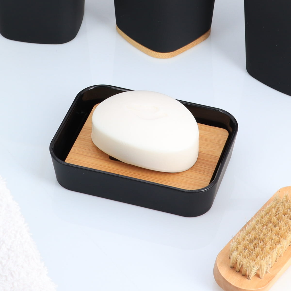 Savoniera RUBBER + ABS AND BAMBOO – BLACK combină materiale naturale și sintetice pentru a oferi un design exotic, rafinat și funcțional. Textura sa moale la atingere și finisajul mat o fac ideală pentru băile moderne, adăugând un accent sobru și elegant. Este ușoară, rigidă și rezistentă.