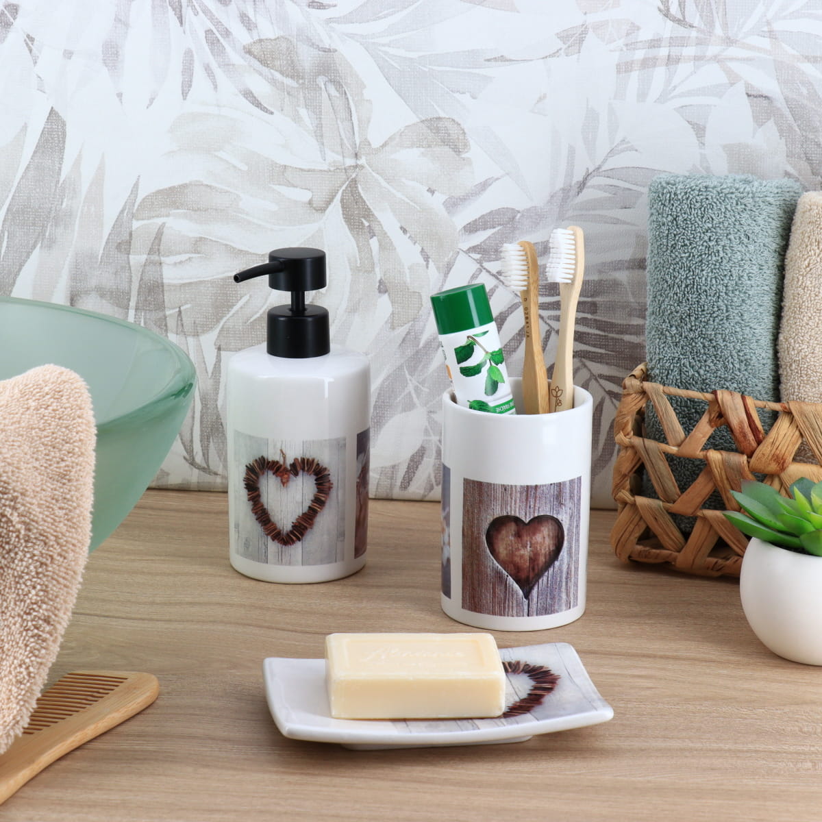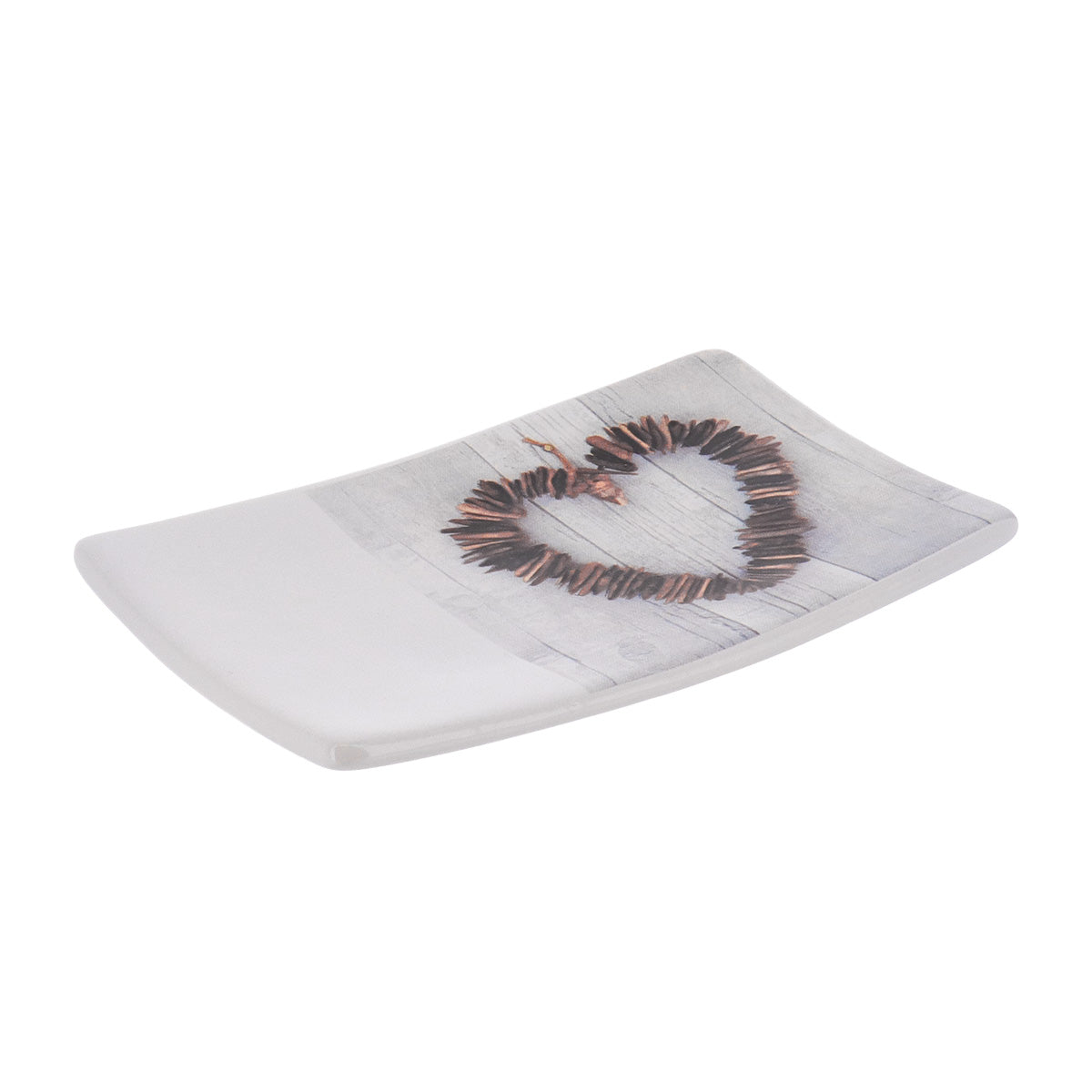 Savonieră decorativă din dolomită imprimată, ideală pentru băi elegante și romantice. Face parte din colecția „Amour”, cu un design delicat ce adaugă un plus de rafinament spațiului tău. Dimensiunea sa o face perfectă pentru lavoare duble, marginea căzii sau blaturi de baie. Materialul ceramic este rezistent și ușor de întreținut. Lavabilă manual, cu marcaj TRIMAN pentru conformitate ecologică. Produs fragil – manipulare cu grijă.