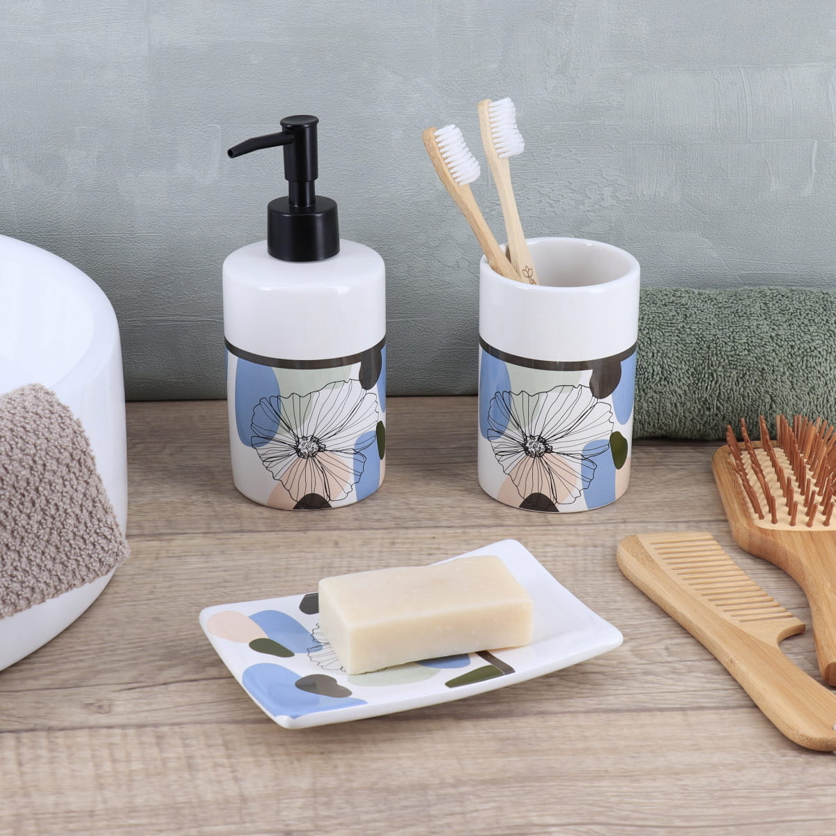 Savonieră decorativă din dolomită imprimată, ideală pentru băi cu atmosferă zen și relaxantă. Face parte din colecția „Flowers”, cu un design armonios ce combină pietre pastelate și flori melancolice, oferind un sentiment de echilibru și liniște. Finisajul delicat se potrivește perfect în decoruri naturale sau romantice. Ușoară, rezistentă și ușor de curățat, este potrivită pentru utilizare zilnică. Certificată TRIMAN pentru conformitate ecologică.
