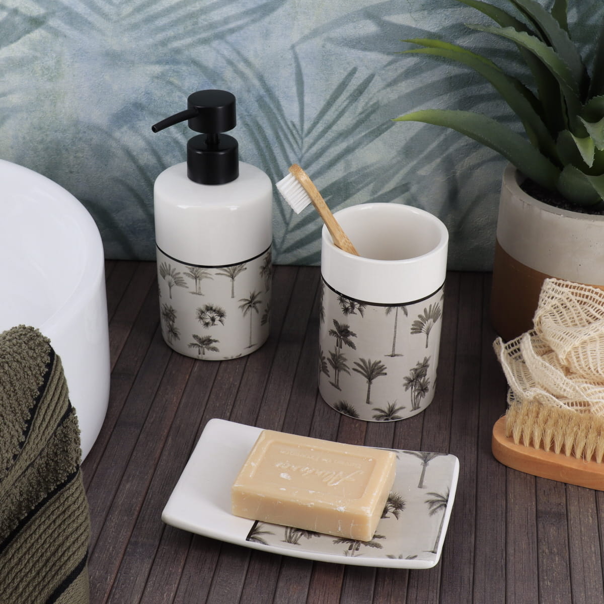 Savoniera din dolomită din colecția Arizona Dream aduce un aer de liniște tropicală în decorul băii tale. Cu un design contrastant cu palmieri, acest accesoriu evocă natura sălbatică într-un echilibru subtil între eleganță și modernitate. Ideală pentru băile care valorizează estetica naturală și detaliile rafinate.