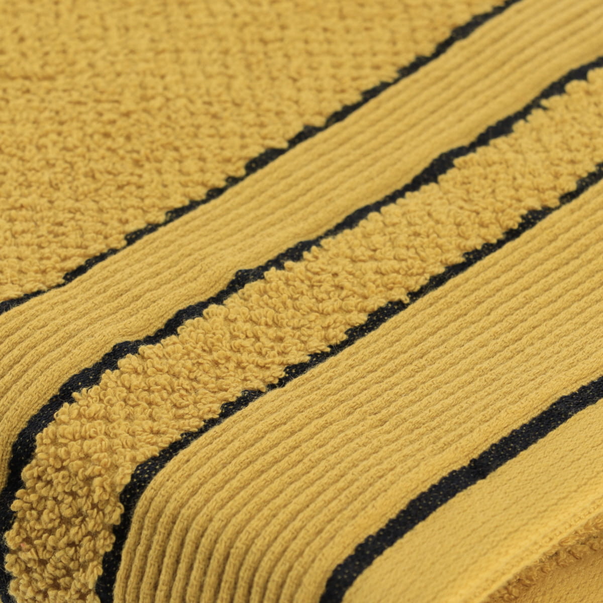 Set de 2 mănuși pentru baie, realizate din bumbac 100%, parte din gama „Black Line” – colecția TimeLess. Cu o densitate de 500 g/m², aceste mănuși sunt moi, absorbante și ideale pentru igiena zilnică. Culoarea ocru cu detalii negre oferă un aspect cald și natural, potrivit pentru băi moderne. Produs certificat OEKO-TEX®, garantând absența substanțelor toxice în textile.