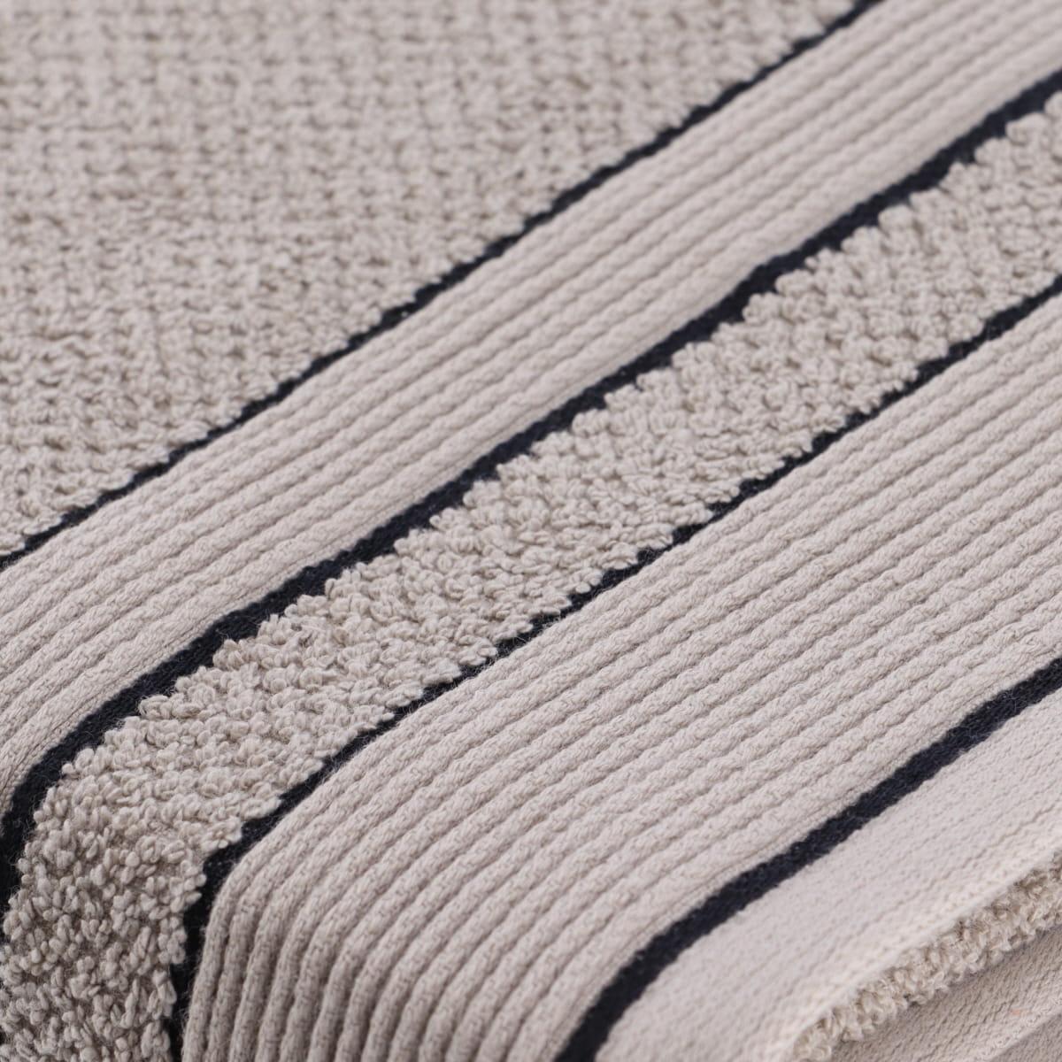 Set de 2 mănuși pentru baie, realizate din bumbac 100%, parte din gama „Black Line” – colecția TimeLess. Cu o densitate de 500 g/m², aceste mănuși sunt moi, absorbante și ideale pentru igiena zilnică. Culoarea naturală/crem cu accente negre oferă un aspect elegant și discret. Produs certificat OEKO-TEX®, garantând absența substanțelor toxice în textile.
