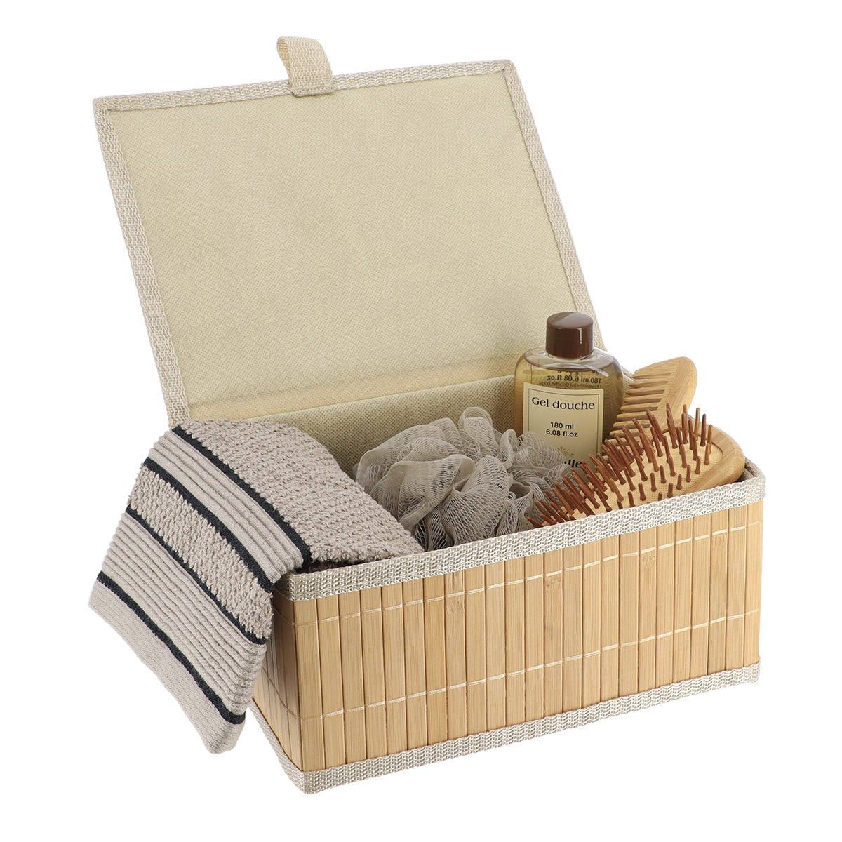 Set de 4 coșuri de depozitare rectangulare cu capac - Bambus