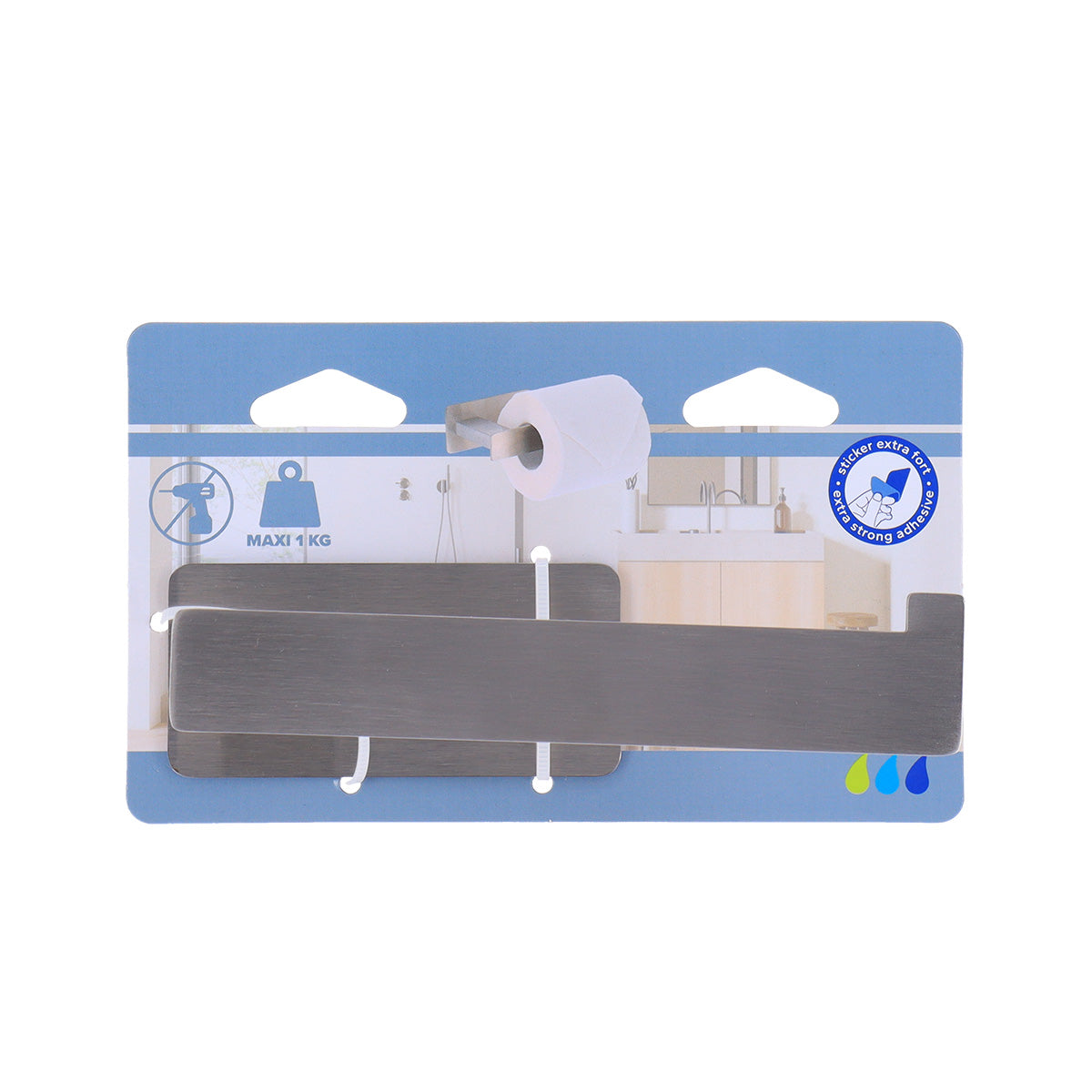 Sistemul de prindere cu bandă adezivă 3M oferă o fixare puternică și sigură, fără găurire sau unelte. Este potrivit pentru suprafețe netede precum faianță, sticlă, metal sau MDF.