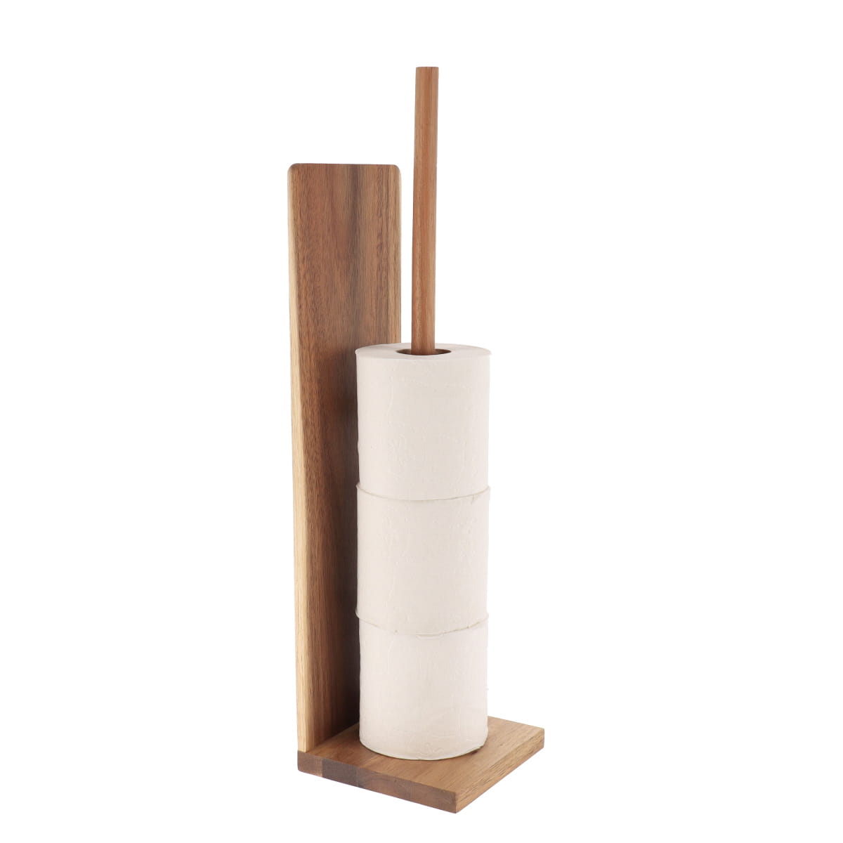 Acest suport pentru rezervă de hârtie igienică este realizat din lemn de acacia și poate susține până la 4 role, fiind soluția ideală pentru păstrarea organizată a consumabilelor din baie.